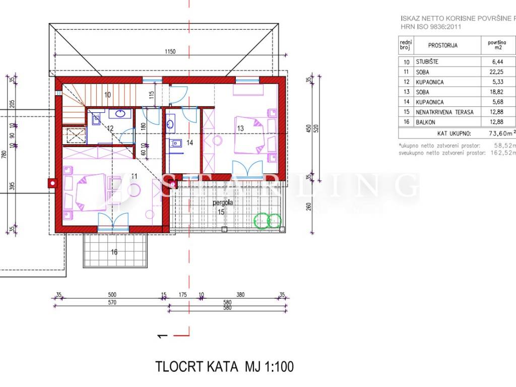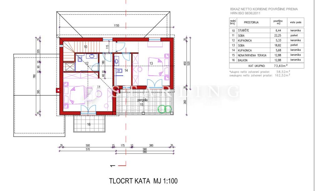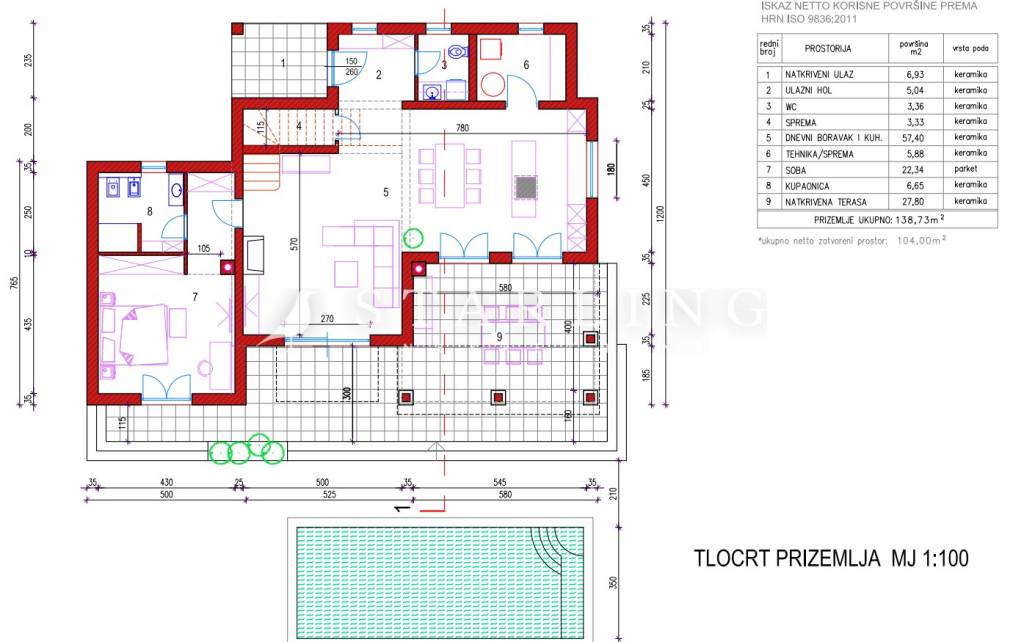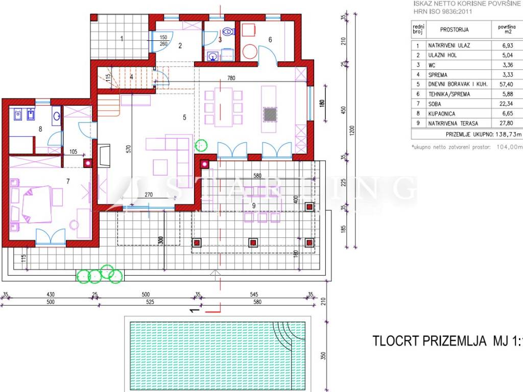 Samostojeća Villa veličine 300 m2 bruto (P+1) tri spavaće sobe, tri kupaonice, dnevni boravak, natkrivena terasa s izlazom na bazen.