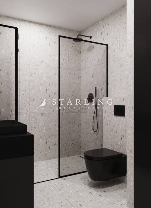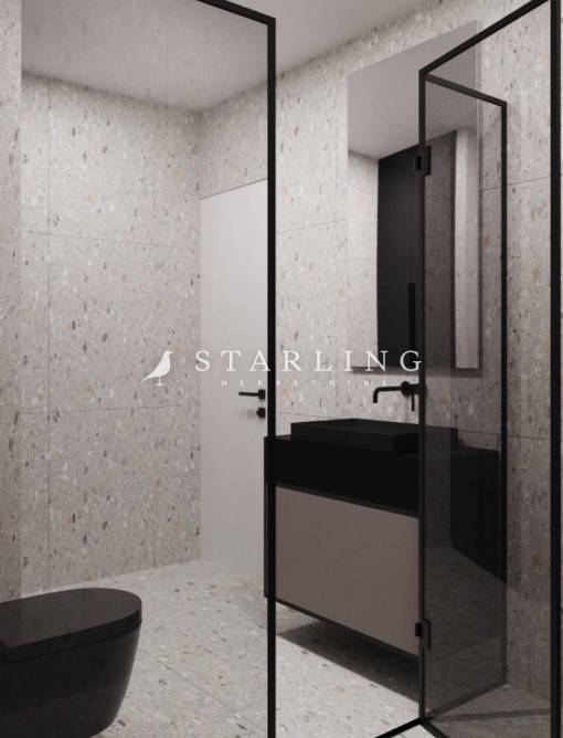 The apartment will be equipped with underfloor heating and air conditioning. The apartment includes two parking spaces and a storage room.