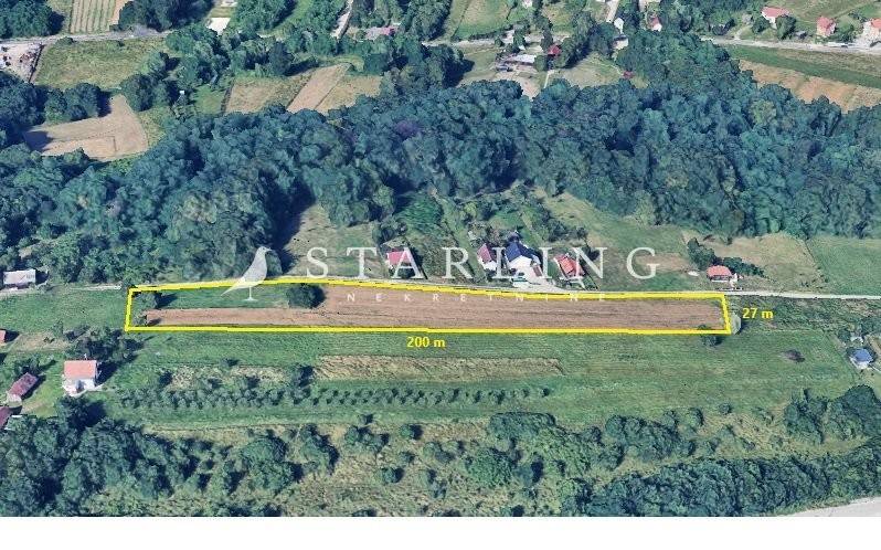 Duljina zemljišta uz cestu je oko 200 m, a širina zemljišta je oko 27 m.