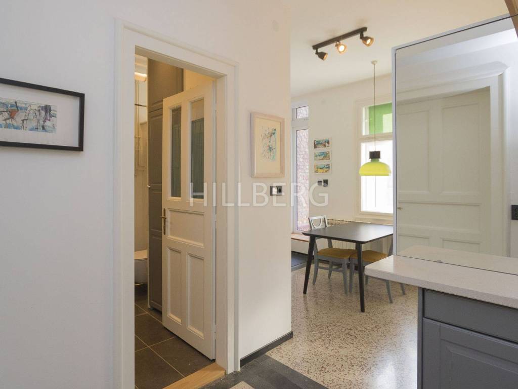 Attractive newly renovated apartment of 40 m2 + 12 m2 terrace, located on the 1st floor of a building without an elevator (built in the 1930s) in a quiet street near Petrova and Kvatrić (Medovićeva).