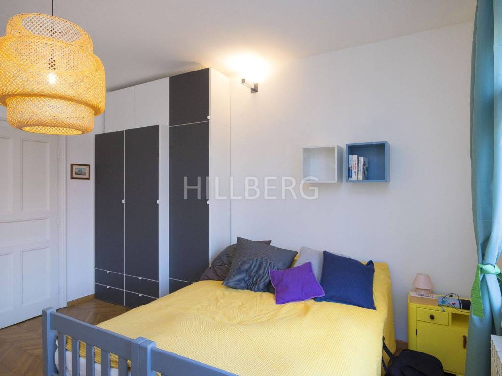 - large bedroom / living room with fitted wardrobe - view of a quiet small alley, east