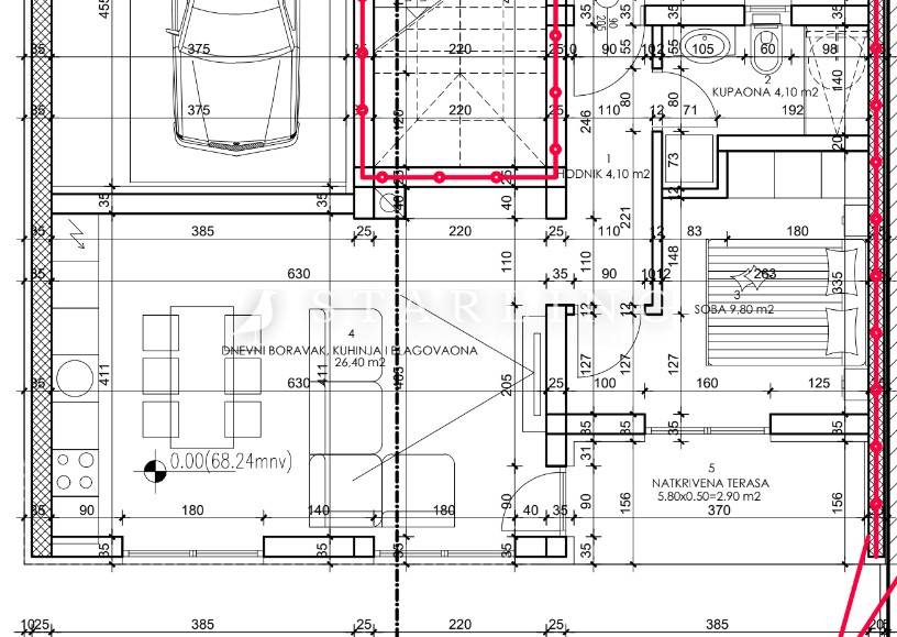 The apartment consists of a spacious living room connected to the kitchen and dining area, with access to a covered terrace. In addition, there is a comfortable bedroom and a modernly designed bathroom.
