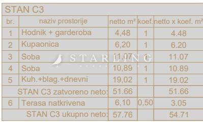 APARTMENT FOR SALE, NEW BUILD, VELI VRH, 59 m², 2 BEDROOMS + LIVING/DINING AREA