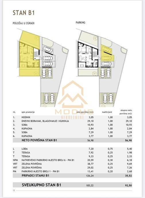 Ukupna površina = 183.22 m2 (obračunski: 92.50 m2)