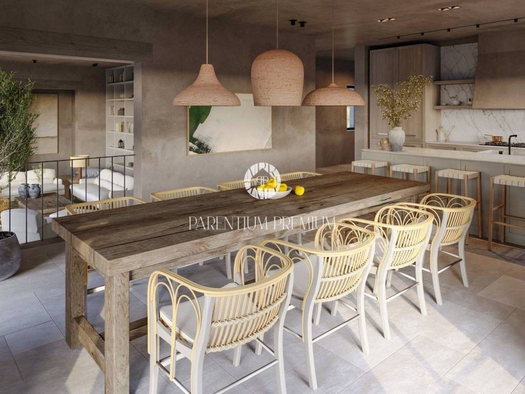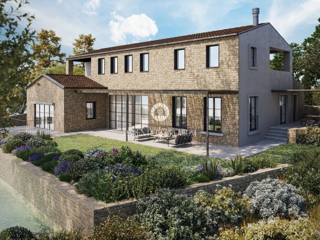 Istrien, Novigrad – UmgebungZum Verkauf steht eine exklusive rustikale Villa von 270 m², gelegen auf einem 1.010 m² großen Grundstück in erhöhter Lage mit wunderschönem Blick auf das Meer und das Tal des Flusses Mirna.Im Erdgeschoss befinden sich ein Eingangsbereich mit Garderobe, ein Abstell-/Technikraum, ein Wellnessbereich mit Whirlpool, Sauna und Dusche, ein Schlafzimmer mit eigenem Badezimmer sowie ein großzügiger Wohnbereich mit Küche und Esszimmer im offenen Konzept. Vom Wohnbereich aus gelangt man auf die Terrasse, die Sonnenterrasse und den Pool.Im ersten Stock befinden sich drei komfortable Schlafzimmer, jedes mit eigenem Badezimmer, wobei zwei auch über eine private Terrasse verfügen.Der Außenbereich wird einen 45 m² großen Skimmerpool mit Sonnenterrasse, eine Sommerküche, Pergolen sowie drei Parkplätze umfassen, alles schön gestaltet mit mediterraner Vegetation.Die Villa wird mit hochwertigen Materialien gebaut: hervorragende Wärmedämmung, Steinverkleidungen, PVC-Fenster mit Dreifachverglasung sowie erstklassige Keramikfliesen — die der Käufer in dieser Bauphase noch auswählen kann. Eine Fußbodenheizung über eine Wärmepumpe sowie Klimaanlagen sind vorgesehen.In dieser Bauphase sind kleinere Anpassungen des Grundrisses und der Innenaufteilung nach Wunsch des Käufers möglich.Der Bau befindet sich im Eigentum einer juristischen Person, und beim Kauf der Gesellschaft kann der Käufer von der Möglichkeit profitieren, die Mehrwertsteuer vom Kaufpreis abzuziehen, was einen erheblichen finanziellen Vorteil darstellt.Verpassen Sie nicht die Gelegenheit, Ihr Traumhaus im istrischen Stil zu erwerben oder als sichere Investition.