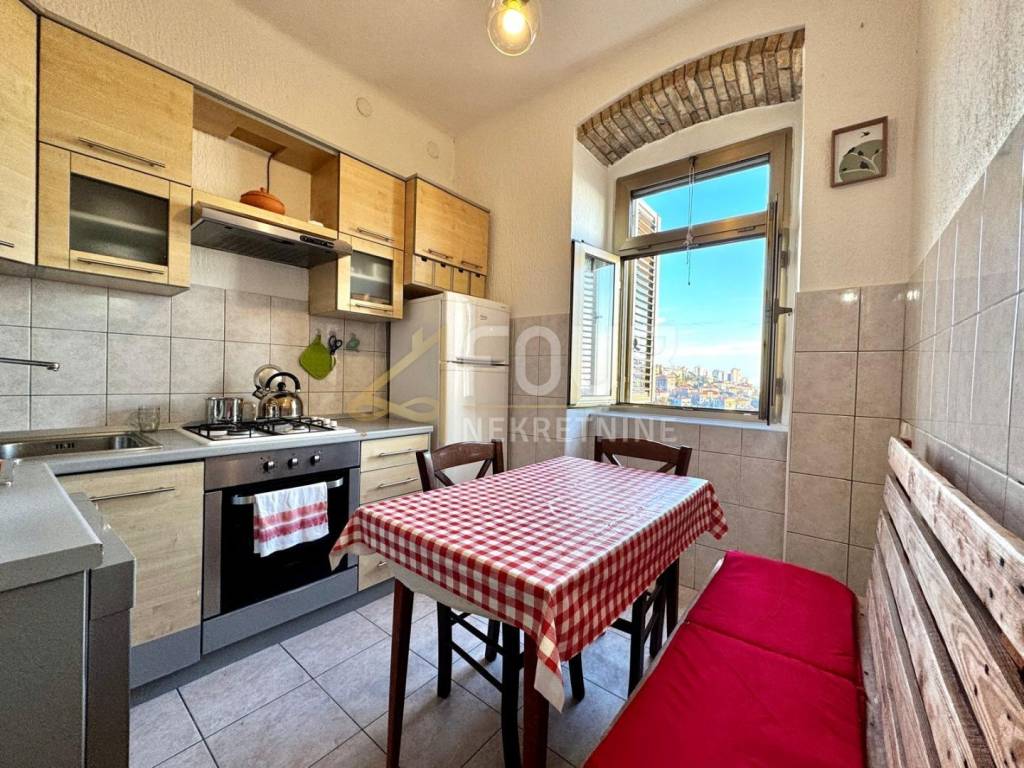 Es wird eine schöne und möblierte Wohnung mit einer Gesamtfläche von 45,78 m2 in der Nähe des Zentrums von Rijeka vermietet! Die Wohnung bietet einen offenen Blick auf das Meer und ist nach Süden ausgerichtet, was für viel natürliches Licht den ganzen Tag über sorgt. Sie besteht aus einer Küche mit Esszimmer, drei Zimmern, wovon eines als Wohnzimmer genutzt wird, einem Flur und einem Badezimmer. Heizung und Kühlung erfolgen über eine Klimaanlage, zusätzliche Heizung wird durch einen Ölradiator bereitgestellt.