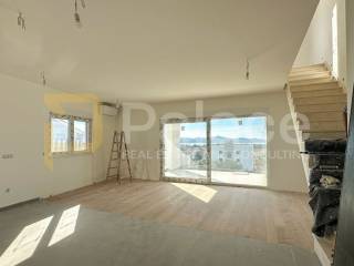 Über die Innentreppe gelangen Sie zur Dachterrasse von 110 m² (27,55 m² berechnet mit einem Koeffizienten von 0,25), ausgestattet mit allen Installationen für eine Sommerküche, WC und Whirlpool, was einen perfekten Ort zum Entspannen und Genießen schafft. Die Terrasse ist mit elegantem schwarzem Glas umgeben und bietet einen bezaubernden Panoramablick auf das Meer, ideal für das Genießen von Sonnenuntergängen.
