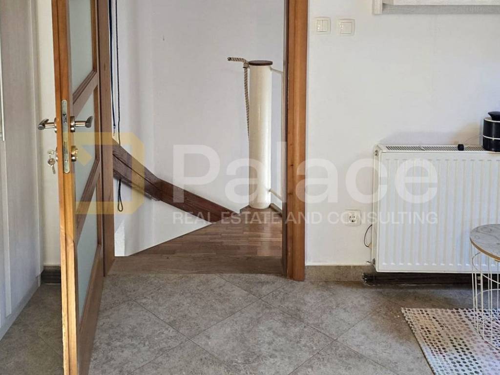 Das Haus besteht aus einer Garage, einem Keller, einem hohen Erdgeschoss mit Terrasse und einer oberen Etage mit Balkon.