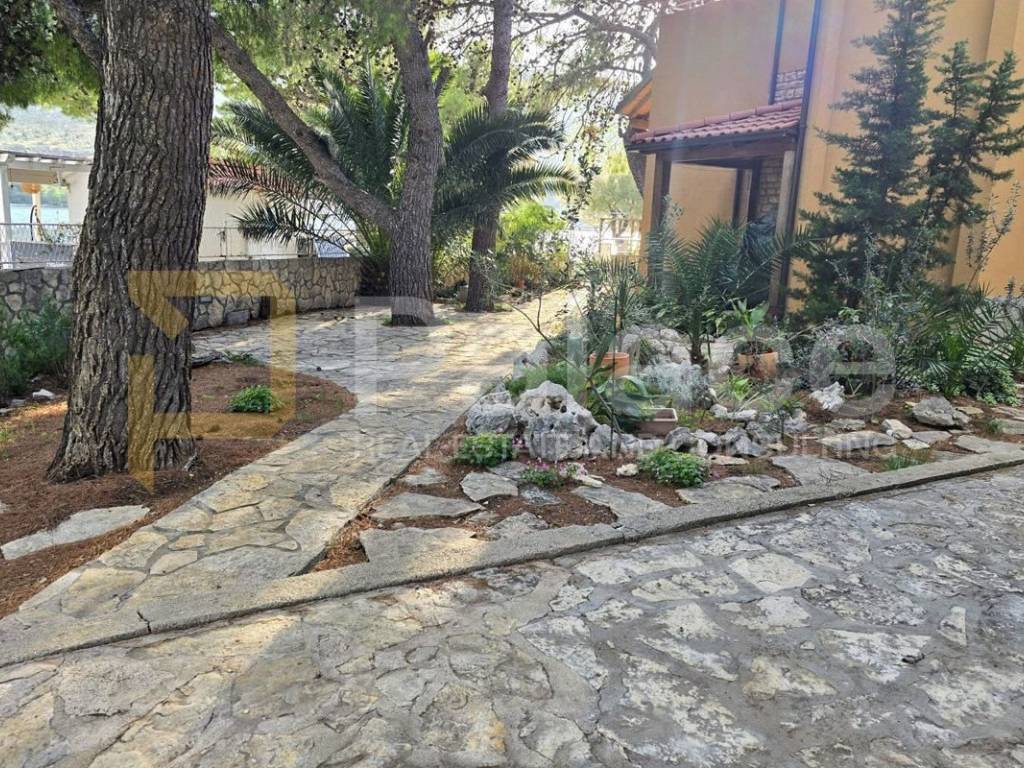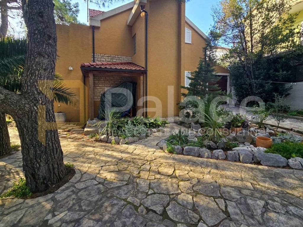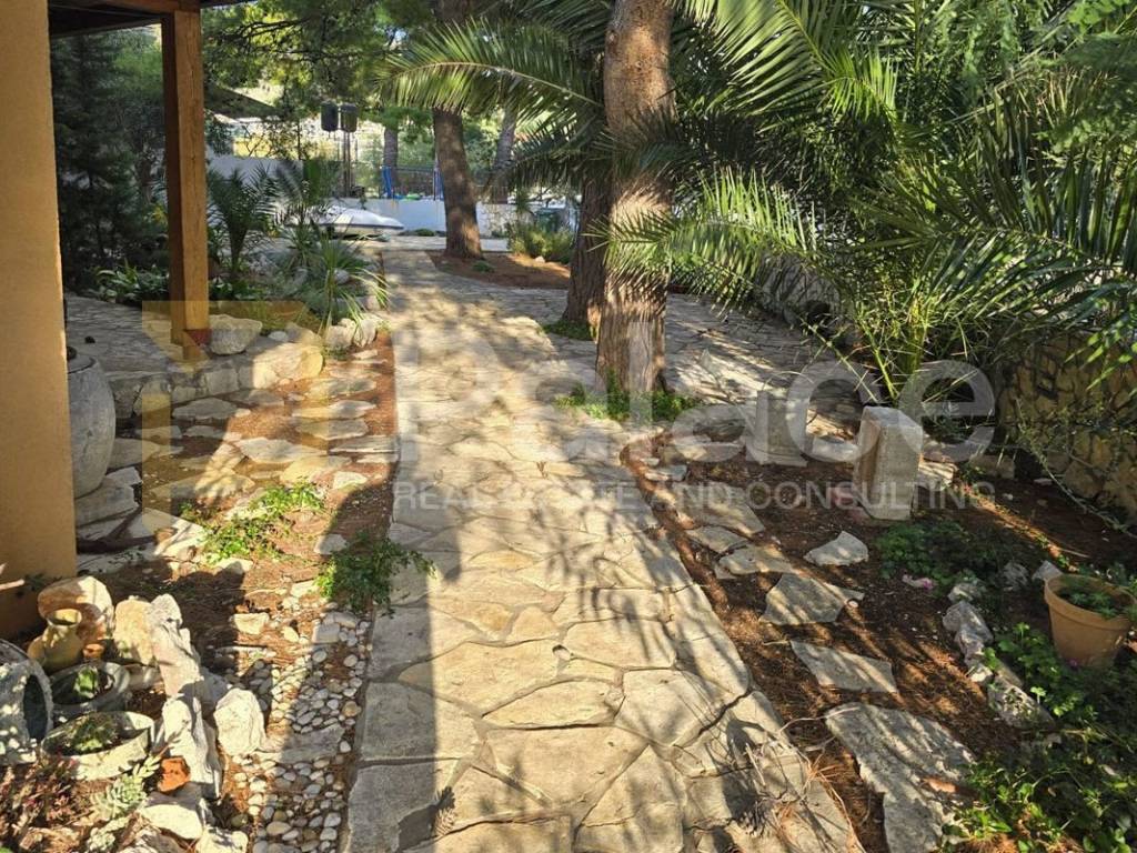 Der Garten des Hauses ist gepflastert und mit Vegetation gefüllt, die typisch für diese Region ist, wie alte Kiefern. Ein Grill aus Stein und eine Sommerdusche sind nur einige der praktischen Ergänzungen dieses Gartens.