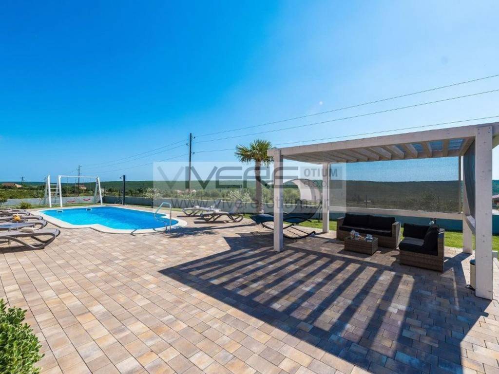 Das Haus im traditionellen dalmatinischen Stil ist auf drei Etagen aufgeteilt. Im Erdgeschoss befinden sich eine Küche mit Essbereich und ein Wohnzimmer mit Kamin und angrenzenden Freizeitraum mit Billiardtisch. Auf der gleichen Etage finden Sie ein großzügiges Schlafzimmer mit begehbaren Kleiderschrank und en suite Badezimmer sowie eine Gädtetoilette im Eingangsbereich der Immobilie. Alle Zimmer im Erdgeschoß öffnen sich zu einer herrlichen, überdachten Veranda mit Tischen und Sitzgelegenheiten. Ideal als Schattenplatz im Sommer oder als windgeschützter Platz für die Wintertage. Eine Außentreppe führt von dieser Ebene zur Poolebene mit großzügigen Pool (35 m²) und Sonnendeck, umrahmt von einem mediterranen Garten mit überdachter Loungeecke und Kinderspielplatz sowie automatischen Bewässerungssystem. In der ersten Etage befinden sich neben einer Waschküche drei weitere große Schlafzimmer mit jeweiligen en suite Badezimmer und Zugang zur schönen Sonnenterrasse, von der aus Sie den Blick auf die Weite der Landschaft bis hin zum Meer genießen können. Das Untergeschoss, welches derzeit als Abstellraum dient, kann nach den indivuiduellen Wünschen des neuen Besitzers ausgebaut werden. Es bietet ausreichen Raum für einen privaten Gym und Wellnessbereich. Hinter der Immobilie befindet sich ein, mit einer Pergola überdachter, Parplatz, der Platz für bis zu vier Fahrzeugen bietet. Die gesamte Immobilie ist klimatisiert und wird vollkommen möbliert verkauft.