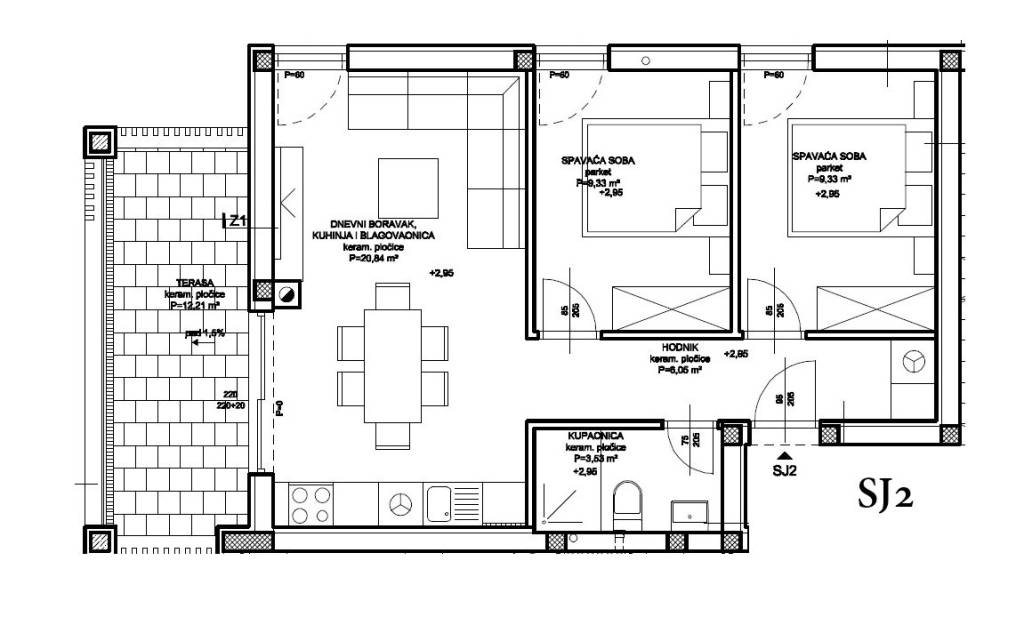 WOHNUNG S2 – ERSTE ETAGE | 65,04 m2 | VODICE, N1
