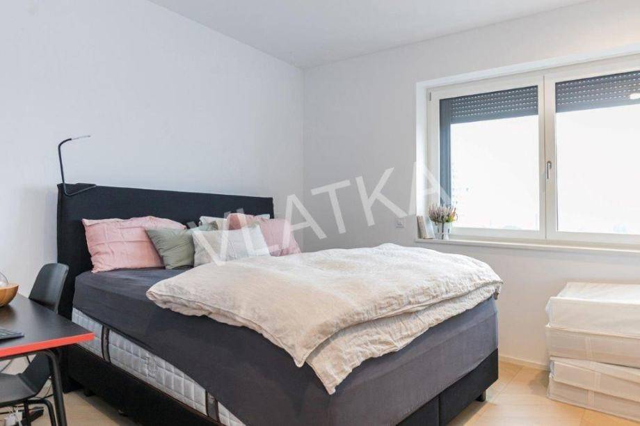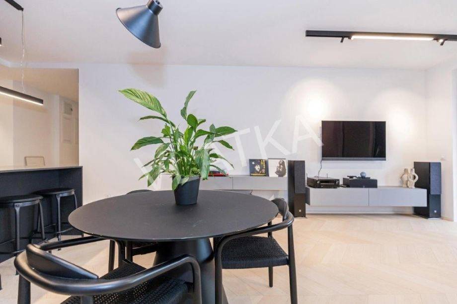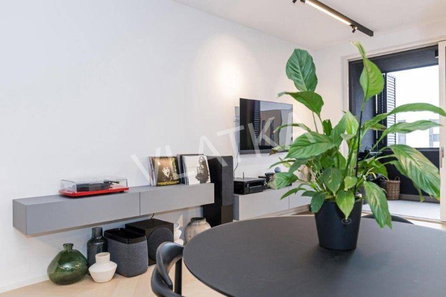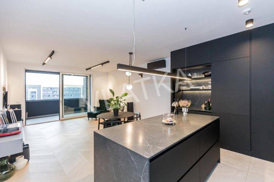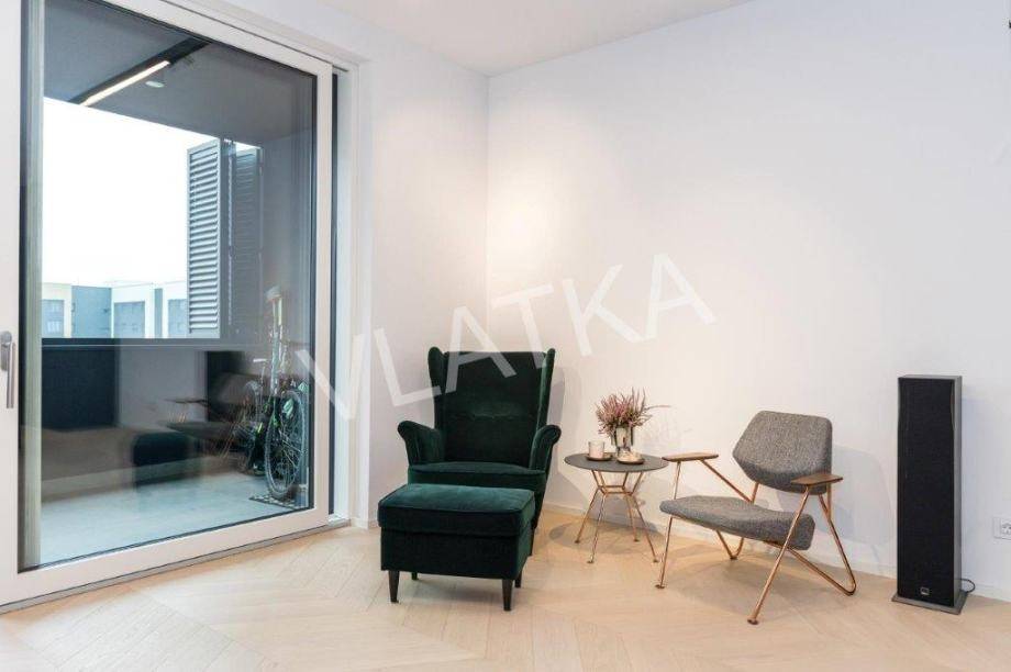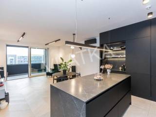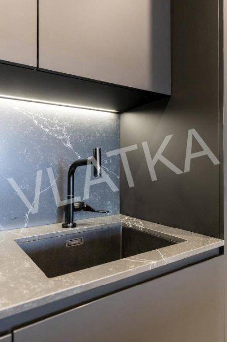 Daikin Black Emura-Klimaanlage (Fernbedienung) in allen Räumen, Fußbodenheizung Danfoss-Sonderregelung in allen Räumen (Fernbedienung), Badezimmer verfügen zusätzlich zur Wasser-Fußbodenheizung über eine zusätzliche elektrische Fußbodenheizung, Miele-Waschmaschine und -Trockner, Miele-Geschirrspüler, Knapić-Küche (Fenix-Material), eine Platte mit integrierter Dunstabzugshaube in der BORA-Kochfläche und einem Heißluftofen der professionellen Marke BORA, ein eingebauter Kühlschrank AEG, äußere Aluminium-Holz-Verbindung in der Farbe Anthrazit mit dreischichtigem IZO-Glas und Moskitonetze in allen Räumen, großformatiges Parkett (Chevron) in allen Räumen, mit Ausnahme des Flurs, eines Teils der Küche und der Loggia, wo hochwertige Keramik verlegt ist, die Installationen für die HiFi-Anlage Dolby Atmos sind verlegt , für die Frontlautsprecher zusätzlich hochwertige Kabel von New Color of Sound.