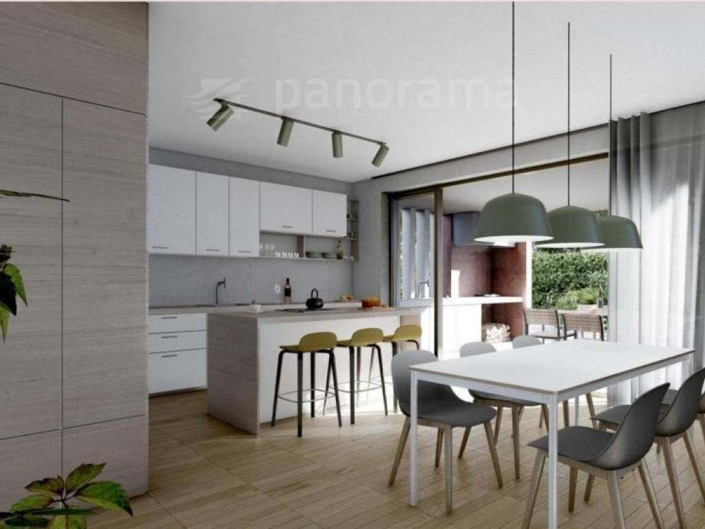 Die Villa hat eine Fläche von 176 m2 und erstreckt sich über das Erdgeschoss und den ersten Stock. Im Erdgeschoss befinden sich eine Küche mit Essbereich und ein offenes Wohnzimmer mit Zugang zu zwei überdachten Terrassen. Neben der Küche gibt es einen internen Abstellraum, während ein kleiner Flur zur Toilette und einem Raum führt, der als Sauna oder Fitnessraum vorgesehen ist und direkten Zugang zur Außenterrasse bietet.