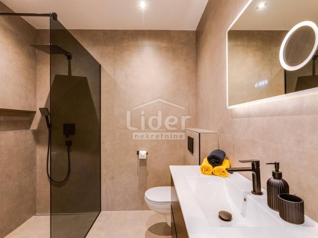 Krk – Neue Immobilie! Wir verkaufen ein neues Ferienhaus mit Pool in dem kleinen, gemütlichen Dorf Lakmartin, das im südöstlichen Teil der Insel Krk zwischen den Städten Punat und Krk liegt. Dieses neue Bauprojekt hat die Energieeffizienzklasse A+ und ist mit hochwertigen Kunststofffenstern, Klimaanlage, Fußbodenheizung, einem Kamin, Parkettböden in den Schlafzimmern und einer manipulationssicheren Eingangstür ausgestattet. Die Wohnfläche des Ferienhauses beträgt ca. 140 Quadratmeter und verteilt sich auf zwei Etagen. Die beiden Etagen sind durch eine Innentreppe miteinander verbunden. Die erste Etage ist ein offener Raum mit einem großen Wohnzimmer und einer Küche mit Essbereich. Außerdem gibt es im ersten Stock ein Schlafzimmer mit Bad und eine separate Toilette. Im zweiten Stock befinden sich zwei Schlafzimmer mit jeweils einem Bad und einer Terrassentür zu einer überdachten Terrasse.