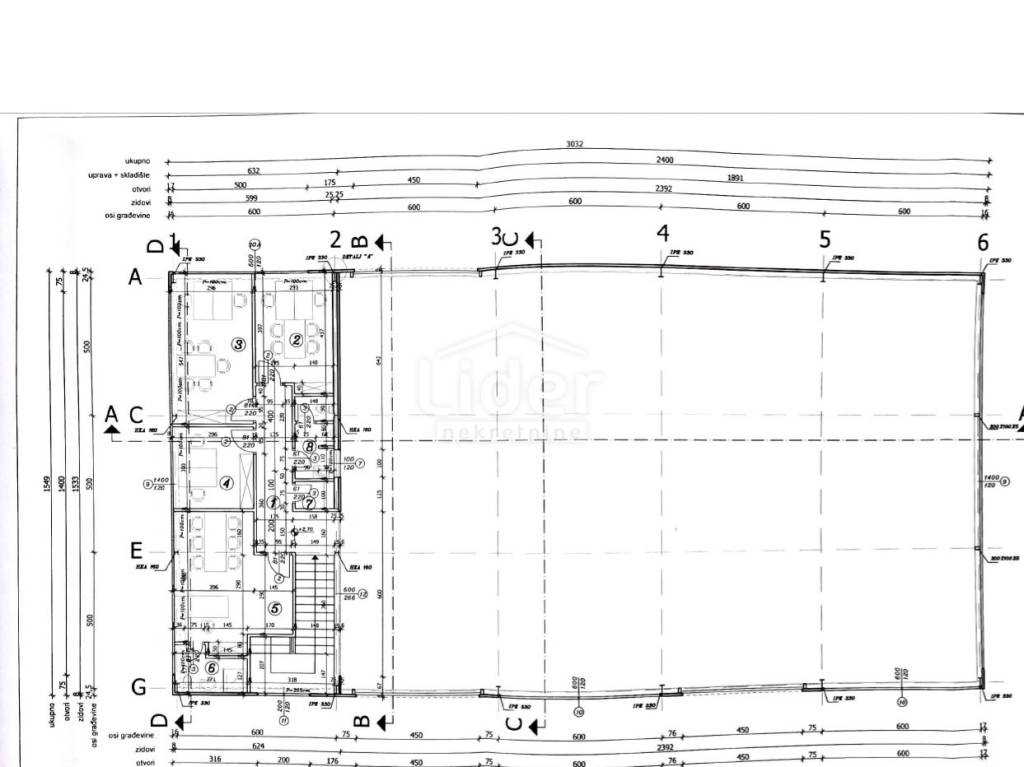 Zum Verkauf steht eine zweistöckige Halle in der Geschäftszone Rupa, die als Geschäftsgebäude - Lager und Bürofläche genutzt wird, mit einer Gesamtbruttogeschossfläche von 568 m². Sie wurde gemäß der Baugenehmigung errichtet und verfügt über eine Nutzungsgenehmigung. Sie besteht aus Büroräumen, die sich über zwei Etagen erstrecken, die umgestaltet werden können, sowie aus einem großen Lagerbereich (siehe Grundrisse). Die Halle ist mit einem Horizontal-Kran mit einer Tragfähigkeit von 2 x 500 kg ausgestattet. Die nutzbare Höhe des Lagerbereichs beträgt 5,5 m. Es gibt ausreichend Parkplätze sowie Rangierflächen neben der Halle. Die Grundstücksfläche, die der Halle dient, beträgt 6.200 m².