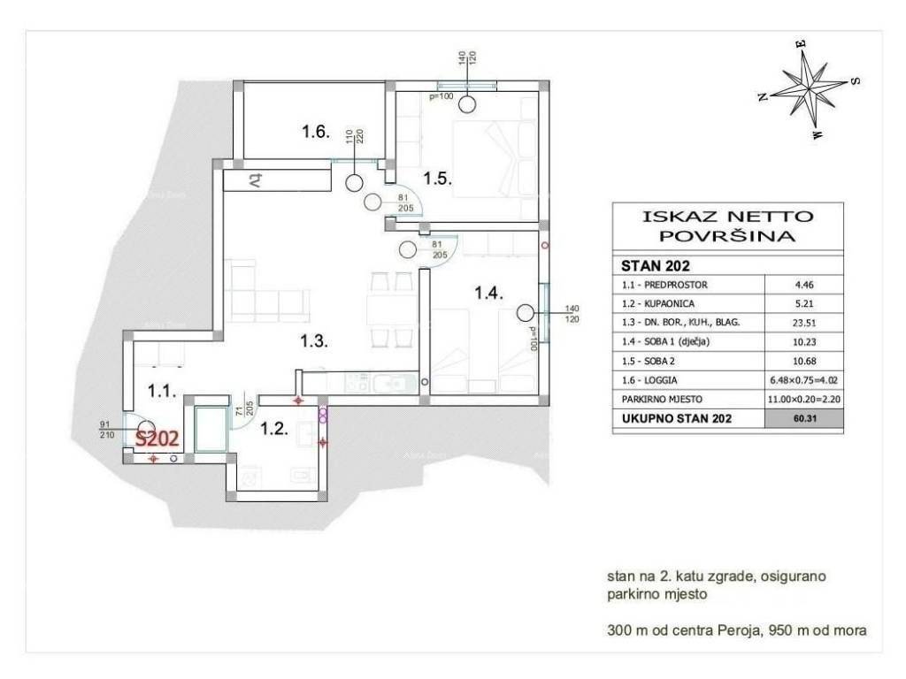 Wir verkaufen eine Wohnung (D202) im zweiten Stock eines neuen Gebäudes in Peroj!Die Wohnung besteht aus zwei Schlafzimmern, einem Badezimmer, einer Küche, einem Esszimmer und einem Wohnzimmer, von dem aus man auf die überdachte Terrasse gelangt.Die Wohnung verfügt über Fußbodenheizung in allen Räumen, außer in den Schlafzimmern, sowie über eine Klimaanlage. Sie wird ohne Möbel, jedoch mit eingebauten Badezimmerarmaturen verkauft.Zur Wohnung gehört ein Parkplatz PM10, der im Preis inbegriffen ist.Für weitere Informationen stehen wir Ihnen gerne zur Verfügung:Azra Valjevac +385 91 611 5706 azra@almadominvest.com Gojko Đurković +385 95 4700000 gojko@alma-nekretnine.com