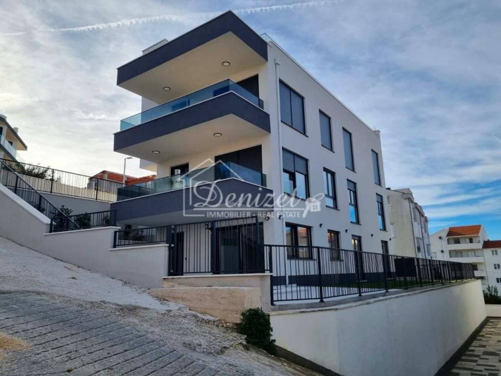 Zum Verkauf steht eine attraktive Wohnung in einem kleineren, neu erbauten Wohngebäude in ruhiger Lage im Ort Okrug Gornji. Das Gebäude umfasst nur drei Wohneinheiten, verteilt auf drei Etagen: Untergeschoss, Erdgeschoss und Obergeschoss.