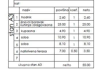 Neues Projekt – Pula!Ein neues Wohnprojekt, das sich in einem ruhigen und angenehmen Teil von Pula befindet und aus zwei modernen Gebäuden besteht, die jeweils drei Etagen (Erdgeschoss, erste und zweite Etage) haben.Gebäude B besteht aus drei Etagen und insgesamt vier Wohnungen, die nach modernen Standards für Komfort und Funktionalität entworfen wurden.Die Wohnung A3 hat eine Fläche von 55 m² und befindet sich im ersten Stock des Gebäudes. Sie besteht aus:FlurBadezimmer2 SchlafzimmerKüche mit Essbereich und Wohnzimmerüberdachter Terrasse.Zur Wohnung wird ein Parkplatz (gegen Aufpreis) angeboten.Hochwertiger Bau, moderne Materialien und ein sorgfältig durchdachter Grundriss machen diese Wohnungen zu einer ausgezeichneten Wahl für das Familienleben, den Urlaub oder als Investition.Geplanter Abschluss der Bauarbeiten: Ende 2026.Für weitere Informationen und Besichtigungen der Wohnung kontaktieren Sie bitte:Azra +385 91 611 5706 +385 98 420 885 azra@almadominvest.com