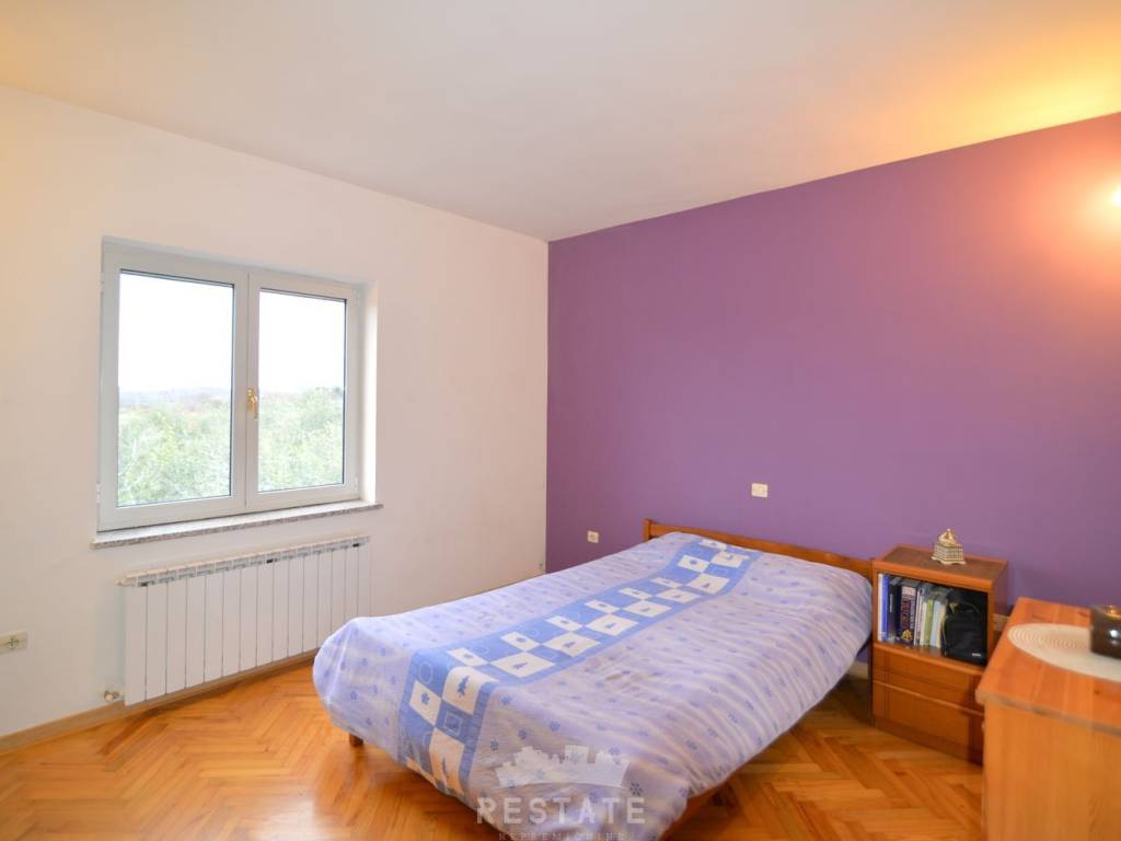 In NW part of Istria, in a village located between Umag and Buje, a brick house built in between 1997 and 2000 is for sale. Altogether the house has 5 bedrooms, 3’5 bathrooms, in addition to the studio apartment (1 bedroom, kitchenette, 1 bathroom) with its private entrance. GF has kitchen, living room, balcony and toilet, 1st in-btw-floor has two (2) rooms, master bedroom (1) with a balcony and a full bathroom, while 2nd in-btw-floor has a large anteroom, two (2) more bedrooms and bathroom with shower. The Mansard/Loft is currently not in use and extends over half of the house therefore offers a great potential for expansion, if needed. Basement has 4 large rooms - spaces with a ceiling height of circa 4-5m and has bathroom with a shower as well. Central heating system is installed and runs on hard woods. House is well maintained. Parking is enabled in front of the house and in a one-car garage.