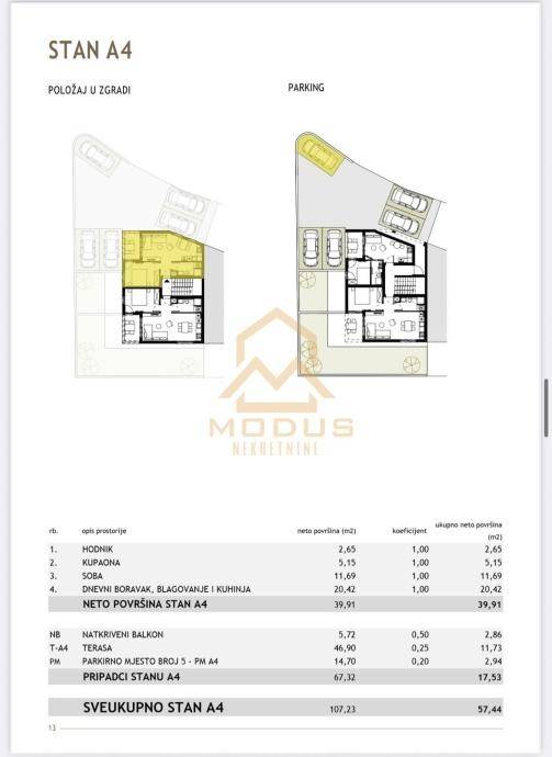 Ukupna površina = 107.23 m2 (obračunski: 57.44 m2)