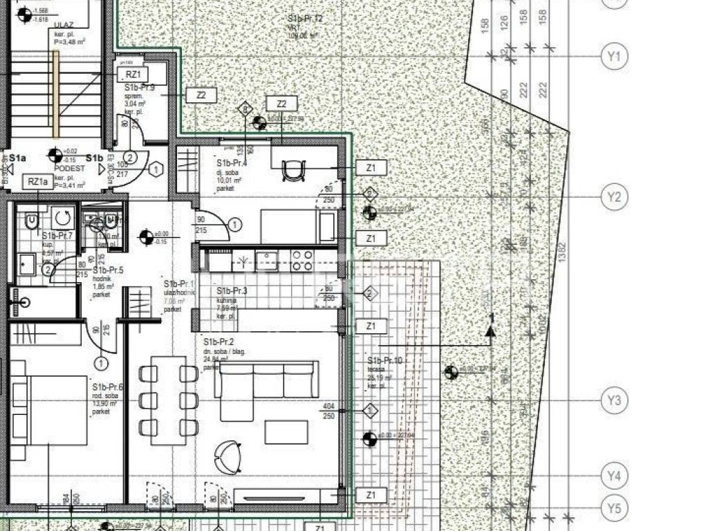 Ispod svake vile projektirana je podzemna garaža za stanare, koja ima direktan pristup liftom iz stanova. Svaki stan ima individualnu toplinsku pumpu sa podnim grijanjem i odvojenim sustavom hlađenja kroz klima jedinice. Dovršetak gradnje 12/2025!