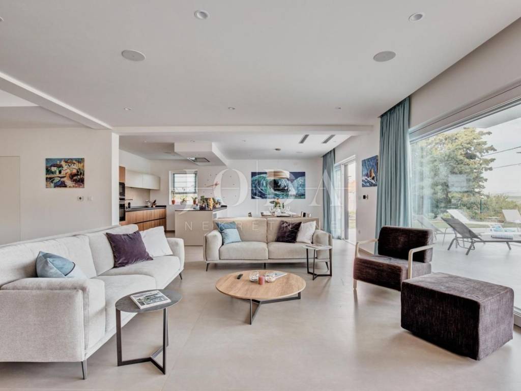 Zum Verkauf steht eine dekorierte und hervorragend ausgestattete exklusive Villa mit Swimmingpool und einem wunderschön angelegten mediterranen Garten in der Nähe der Stadt Krk! Die Villa hat eine Fläche von 293 m2, einen großen Garten von 1244 m2 und besteht aus zwei Etagen. Im Erdgeschoss der Villa befinden sich ein Wohnzimmer, eine Küche mit Esszimmer, ein Badezimmer, ein Spielzimmer, ein Abstellraum und ein Wellnessraum. Im ersten Stock befinden sich vier Schlafzimmer mit eigenen Bädern und Balkonen sowie eine Wäscherei. Besonderes Augenmerk wurde auf das dekorierte Interieur dieses wunderschönen Immobiliens gelegt. Die beiden Geschosse sind durch eine „schwebend“ gestaltete Innentreppe verbunden, an deren Fuß sich eine begrünte Grünfläche befindet. Der Garten im Freien ist im mediterranen Stil eingerichtet. Es gibt auch einen großen Swimmingpool mit Liegewiese und Platz für Geselligkeit und Entspannung im Garten. Diese Immobilie ist stolz auf die hochwertigen Materialien, die für den Bau verwendet wurden, und die hochwertige Ausstattung von renommierten globalen Herstellern. Das Heiz- und Kühlsystem erfolgt über Gebläsekonvektoren, eine Wärmepumpe und Fußbodenheizung in der gesamten Villa. Die Villa ist voll möbliert und wird auch so verkauft. Eine hervorragende Gelegenheit, eine exklusive Immobilie in ruhiger Lage zu erwerben! ID CODE: EI-4171 Josip Šikić, mag.oec Agent s licencom Mob: +385 91 890 4694 Tel: +385 51 403 771 E-mail: info@joda-nekretnine.hr www.joda-nekretnine.hr