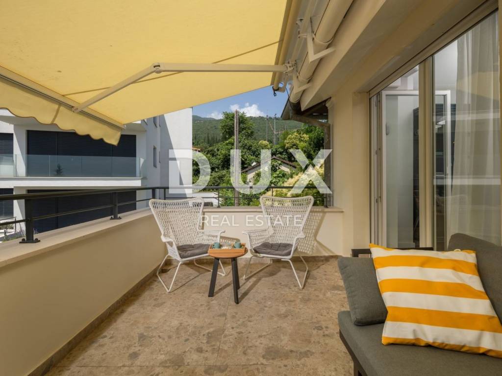 OPATIJA, ZENTRUM – Neu renovierte Wohnung mit Meerblick  Die Wohnung befindet sich im Zentrum von Opatija, nur 100 Meter vom Strand entfernt und in der Nähe aller Annehmlichkeiten. Es befindet sich im zweiten Stock einer wunderschönen Villa in Opatija und bietet die perfekte Mischung aus Eleganz und Komfort. Es wurde von den Installationen bis ins kleinste Detail vollständig renoviert, wobei Materialien höchster Qualität verwendet wurden. Es ist modern eingerichtet und für eine besondere Portion Luxus sorgen die hochwertigen Keramikbodenbeläge, während die Terrasse mit echtem Brač-Stein bedeckt ist. Es besteht aus einer Eingangshalle, einem geräumigen Wohnzimmer mit Küche und Esszimmer, die Zugang zu einer großen Terrasse mit wunderschönem Meerblick haben, sowie einem Schlafzimmer und einem modernen Badezimmer. Neben Fußbodenheizung in Bad, Küche und Wohnzimmer ist die Wohnung mit den neuesten Technologien ausgestattet – sämtliche Elektronik ist über WLAN verbunden und kann per Telefon gesteuert werden, einschließlich der Bewässerungsanlage für die Pflanzen auf der Terrasse. Auf der Terrasse wurde eine elektrische Markise mit Windsensor installiert und neue Klimaanlagen von Mitsubishi sorgen für die ideale Temperatur im Raum. Die Wohnung wird komplett möbliert verkauft und ist eine ideale Wahl für einen Urlaub sowie eine hervorragende Investition für die touristische Vermietung. Opatija, eine wunderschöne Küstenstadt an der Adria, ist ein bekanntes Reiseziel für Touristen aus aller Welt. Die Stadt ist von wunderschöner Natur umgeben und liegt am Fuße des Berges Učka. Immobilien in Opatija bieten einen unbezahlbaren Blick auf das Meer und die umliegenden Inseln Krk und Cres. Opatija ist von charmanten Kleinstädten mit alten Häusern umgeben, die in geschichtsträchtigen engen Gassen eingebettet sind. Die Straßen der Stadt Opatija bestehen aus Immobilien, die durch ihre spezifische Architektur und Villen aus der Habsburgerzeit auffallen. Eine große Auswahl an Stränden, kristallklares Meer und vielfältige touristische Dienstleistungen sind Schlüsselfaktoren, die Opatija zu einem perfekten Reiseziel machen, das von den Nachbarländern als hervorragende Investitionswahl anerkannt wird.   Sehr geehrte Kunden, es fallen Vermittlungsprovisionen gemäß den Allgemeinen Geschäftsbedingungen an. www.dux-nekretnine.hr/opci-uvjeti-poslovanja  ID CODE: 37290  Ivan Vinger Agent s licencom Mob: +385 91 601 3692 Tel: +385 91 480 8808 E-mail: ivan.vinger@dux-nekretnine.hr www.dux-opatija.com