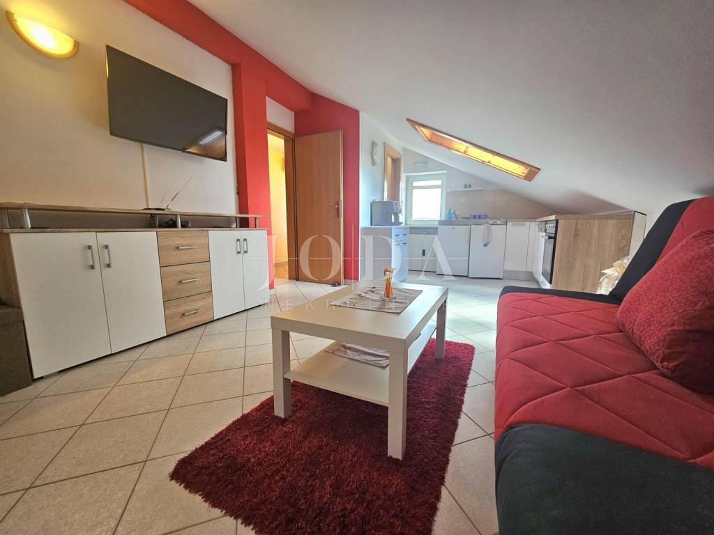 Eine Wohnung mit offenem Meerblick in Malinska steht zum Verkauf. Die Wohnung von 63,69 m2 befindet sich im Dachgeschoss und besteht aus einem Eingangsbereich, einem Abstellraum, einer Küche mit Esszimmer und Wohnzimmer, einem Badezimmer, zwei Schlafzimmern, einer zusätzlichen Küche mit Wohnzimmer, einem Flur und einer Terrasse mit offenem Meerblick. Die Wohnung kann als zwei separate Wohnungen genutzt werden. Es sind drei Parkplätze vorhanden, einer davon ist überdacht. Gute Lage, die Entfernung zum Zentrum und zum Meer beträgt ca. 700 m. Die Immobilie ist ideal zum Wohnen oder für den Urlaub. ID CODE: EI-5853 Josip Šikić, mag.oec Agent s licencom Mob: +385 91 890 4694 Tel: +385 51 403 771 E-mail: info@joda-nekretnine.hr www.joda-nekretnine.hr