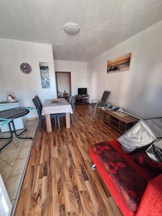 Pogled na more. Odvojen zaseban ulaz od drugih stanova diskrecija od drugih apartmana obzirom da ima ukupno 6 apartmana u objektu. Udaljeno od plaže 100m. Južna stran. Top apartman bez ulaganja.