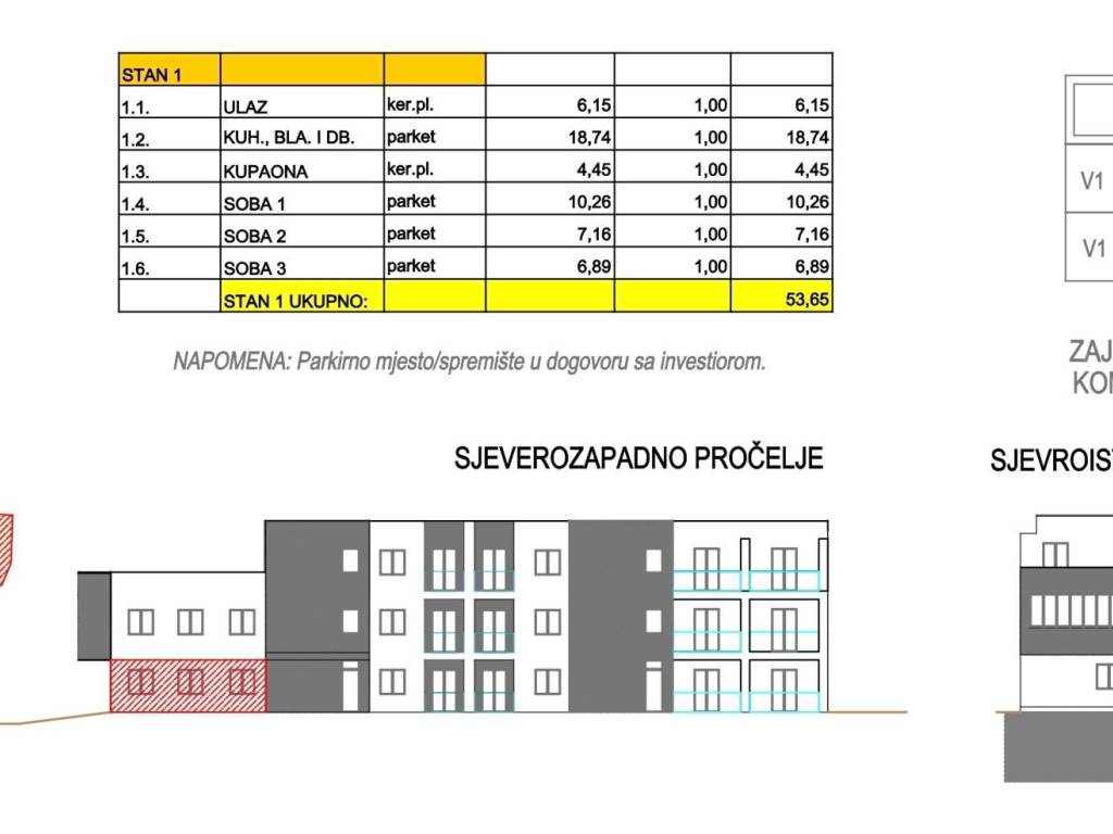 Uz stan postoji mogućnost kupnje garažnog parkirnog mjesta površine cca 14 m², po cijeni od 20.000 €.