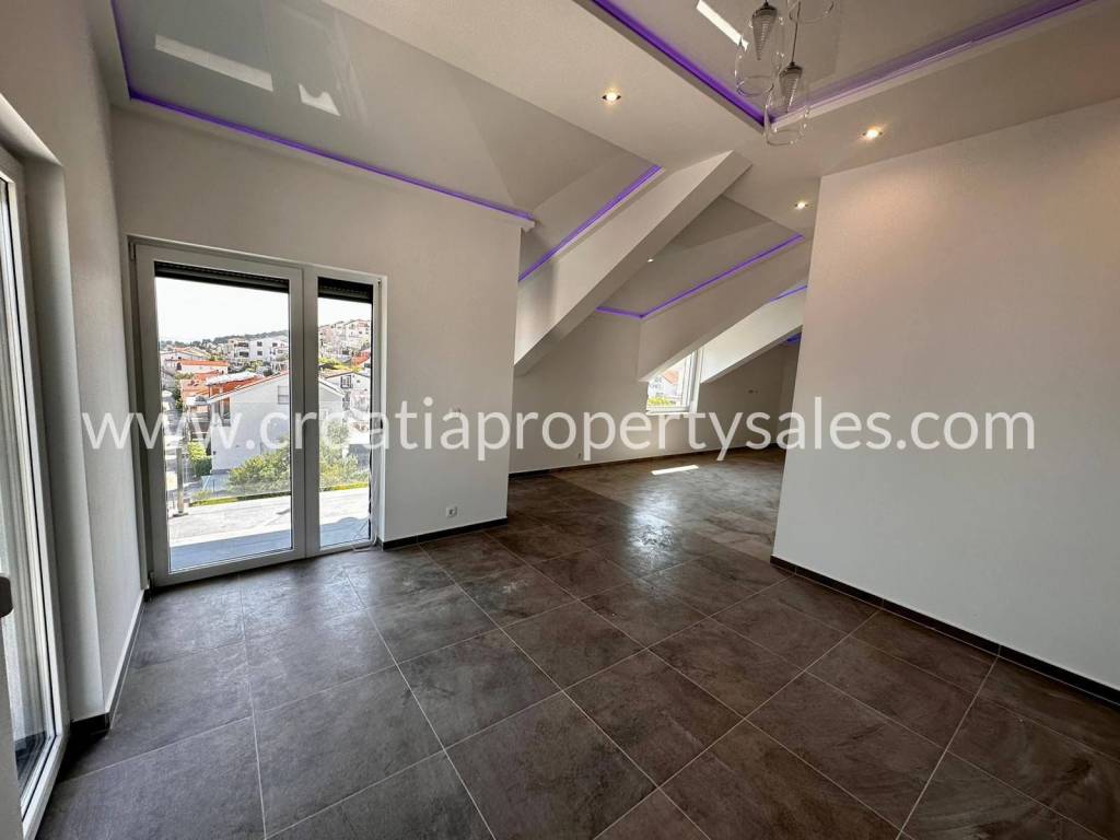 Schöne Apartments auf der Nordseite der Insel Ciovo, nahe am Meer.Insgesamt wird es 7 Wohnungen geben, kombiniert mit Ein- und Zwei-Zimmer-Wohnungen, während in der obersten Etage eine Penthouse-Wohnung mit 3 Schlafzimmern, 2 Bädern und 3 Balkonen entsteht. Es besteht aus 4 Etagen und die Erdgeschosseinheiten werden auch über einen Außenbereich verfügen.DRITTE STOCK:P – 3 Schlafzimmer, 2 Badezimmer, separate Küche und Ess-/Wohnzimmer + 3 Balkone – 117 m² – 409.500€Für jede Wohnung ist ein Außenparkplatz im Preis inbegriffen, während für die Penthouse-Wohnung 2 Parkplätze im Preis inbegriffen sind.  Zu jeder Wohnung gehört außerdem ein kleiner Abstellraum im Erdgeschoss.Der Flughafen Split ist 6 km entfernt und alle Annehmlichkeiten befinden sich in unmittelbarer Nähe. Zum nächsten Strand sind es nur 2 Minuten zu Fuß.