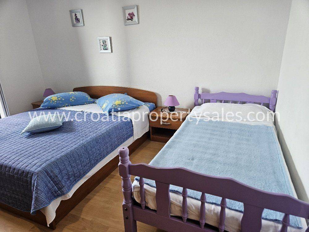 Apartment mit wunderschönem Blick auf das Meer und die Inseln.Es befindet sich im zweiten Stock. Es besteht aus drei separaten Mieteinheiten mit der Möglichkeit der Umwandlung in eine große Wohnung.Es ist 117 m2 groß und besteht aus vier Schlafzimmern, einem Flur, drei Badezimmern, zwei Küchen mit Esszimmer und einer großen Terrasse mit Blick auf das offene Meer.Ideal sowohl zum Wohnen als auch zur Miete. Es liegt 100 m von schönen Kiesstränden und einer Promenade entfernt.Es verfügt über 3 Parkplätze.