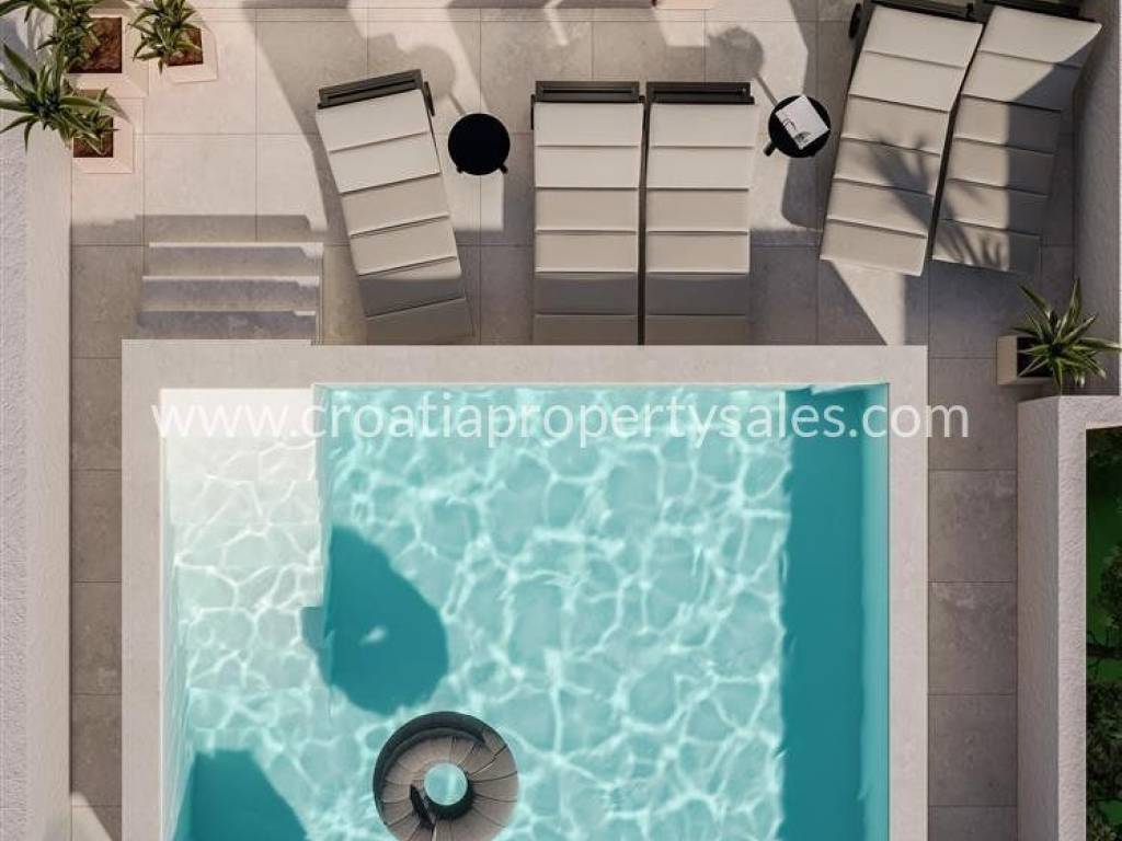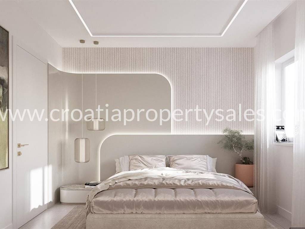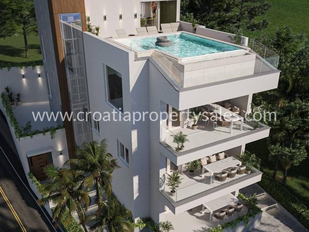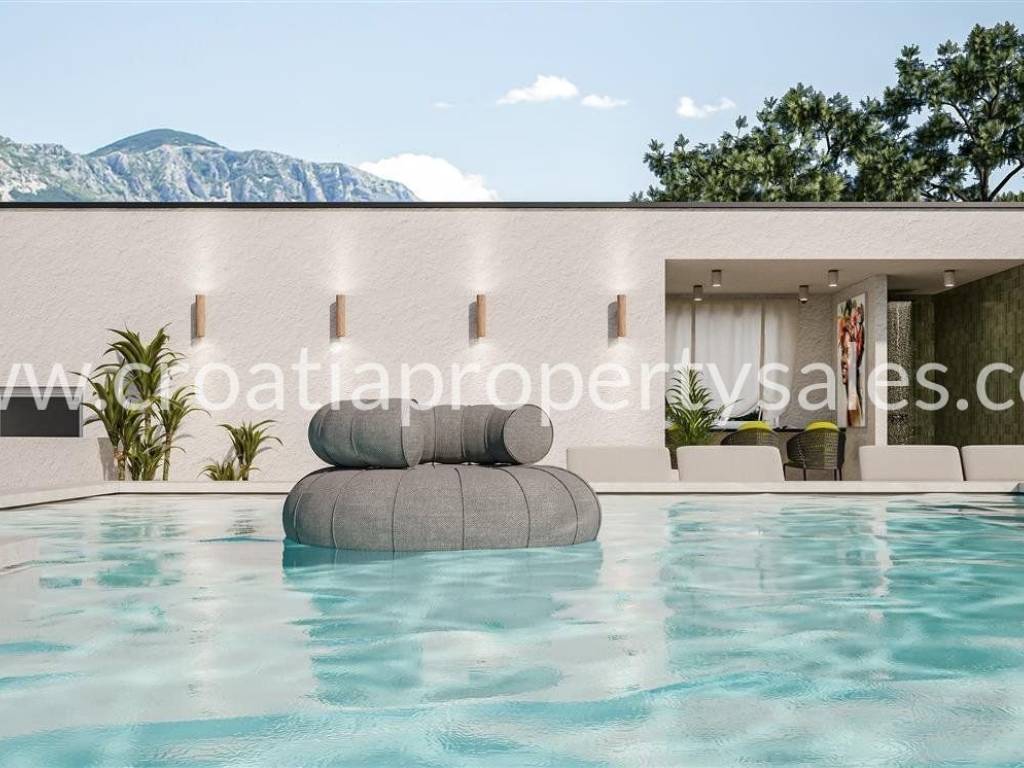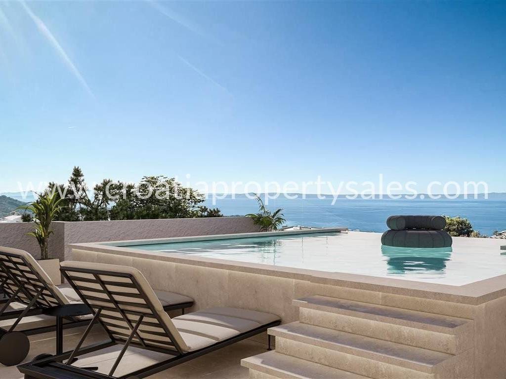 In einer Entfernung von 1,5 km von einem attraktiven Kiesstrand, auf einem Hügel oberhalb von Makarska, befindet sich diese luxuriöse Villa, die dem zukünftigen Eigentümer eine perfekte Lage, Privatsphäre, Ruhe, einen unverbauten und „ewigen“ Blick auf das Meer und die Stadt bietet.Die Villa erstreckt sich über insgesamt drei Etagen, die durch einen Panoramaaufzug und eine Treppe miteinander verbunden sind. Im Hof des Gebäudes stehen vier Parkplätze zur Verfügung.Im Erdgeschoss des Gebäudes, getrennt durch einen separaten Eingang, befindet sich eine geräumige, moderne dalmatinische Taverne mit einem großen eingebauten Kamin. Direkt neben der Taverne befindet sich ein Bereich mit Technik- und Lagerraum. Links vom Haupteingang befindet sich ein Flur mit Waschküche und drei Schlafzimmern. jedes mit eigenem Bad und Terrasse.Im ersten Stock des Hauses befindet sich eine Einzimmerwohnung von 144,50 m2, die aus einem Wohnzimmer mit Küche, einem Schlafzimmer, einem Badezimmer und zwei großzügigen Terrassen besteht.Die zweite Etage der Villa ist als Partyraum konzipiert, in dem sich ein luxuriös ausgestattetes Wohnzimmer mit Küche, ein Badezimmer und eine überdachte Terrasse befinden.Im dritten Stock der Villa gibt es eine Liegewiese und einen 25 m2 großen Infinity-Pool, der einen fantastischen Blick auf das Meer, Makarska, die Inseln und den Biokovo-Berg bietet.Das gesamte Gebäude ist aus hochwertigsten Materialien gebaut und wird voll ausgestattet verkauft, mit der Option, es ohne Möbel zu kaufen.Der Hof des gesamten Gebäudes ist von natürlicher Vegetation umgeben; Westlich des Hauses gibt es Olivenhaine und der Rest des Hauses ist mit Pinien, Palmen und anderen einheimischen Pflanzen geschmückt.In der High-Roh-Bau-Phase erhält der potenzielle Käufer die Möglichkeit, an der Auswahl der Ausstattung und der eigentlichen Fertigstellung mitzuwirken, die für September, spätestens November 2024 geplant ist.