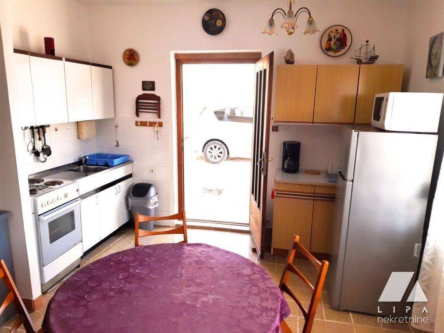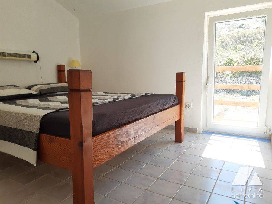 Zum Verkauf: Die rechte Seite eines Doppelhauses in der Stadt Pag, die von 5 Wohnungen zusammengesetzt ist und eine etablierte Praxis von Ferienvermietung hat. 250 Meter vom Meer entfernt. Die Immobilie hat einen schönen Blick auf Pag und eine Bucht. Jede Wohnung hat einen separaten Eingang. Komplette Infrastruktur. Die Wohnungen sind kategorisiert und der Käufer erhält ein etabliertes Geschäft. ERDGESCHOSS WO5 -54,46 m2 (Studio-Wohnung mit einem größeren Abstellraum, den man für einen anderen Zweck umbauen kann, Badezimmer mit Dusche, Terrasse auf der nördlichen Seite) WO4 – 32,78 m2 (Studio-Wohnung mit einem Badezimmer mit Dusche, Terrasse auf der nördlichen Seite) ABSTELLRAUM: 2 m2. 1. STOCK WO3 – 23,17 m2 (Schlafzimmer, Wohnzimmer mit Esszimmer und Küche, Badezimmer mit Dusche, Terrasse neben der Wohnung) WO2 – 24, 83 m2 (Schlafzimmer, Wohnzimmer mit Esszimmer, Küche, Badezimmer mit Dusche, eine Terrasse auf der nördlichen und eine auf der südlichen Seite) 2. STOCK WO1 – 39, 78 m2 (zwei Schlafzimmer, Wohnzimmer mit Esszimmer und Küche, Badezimmer mit Dusche, eine Terrasse auf der nördlichen und eine auf der südlichen Seite) GESAMMTE NETTO NUTZFLÄCHE: 179, 02 m2 GRUNDSTÜCK: 326,5 m2 – es besteht die Möglichkeit weitere 140 m2 Netto anzubauen. Das Dach ist neu, Tondach Verena Dachziegel in Ocker Antikfarbe. 12 cm Dämmwolle und 2 Folien, ventiliert. Alles ist mit Inox Schrauben befestigt. Die südlichen und östlichen Wände sind mit Wärmedämmung ausgestattet.Ein Teil der Fassade, des Hofes und der Terrasse ist in Stein aus Benkovac verkleidet. Die Ausstattung ist neu. Neuer Kühlschrank, Backofen mit Lüfter, Bosch Waschmaschine bis zu 8 Kilo, zwei Boiler, die den Gesamtbedarf des kompletten Objektes decken, externe Solarboiler, neue LED – Fernseher. WLAN-Router befinden sich auf jeder Etage und decken jeden Teil des Hauses und des Grundstückes ab. Die Betten und ein teil der Möbel sind aus Massivholz hergestellt. Die meisten Matratzen sind hochwertig und neu. Das Haus ist eingerichtet und kann sofort vermietet werden. – Die Preise, die in der Saison erzielt werden, betragen 75 € für kleinere 2+2 Wohnungen und 100 € für die 4+2 Wohnung. Der Preis beträgt 280.000 €. Für alle weiteren Fragen wenden Sie sich bitte an Lipa Nekretnine.