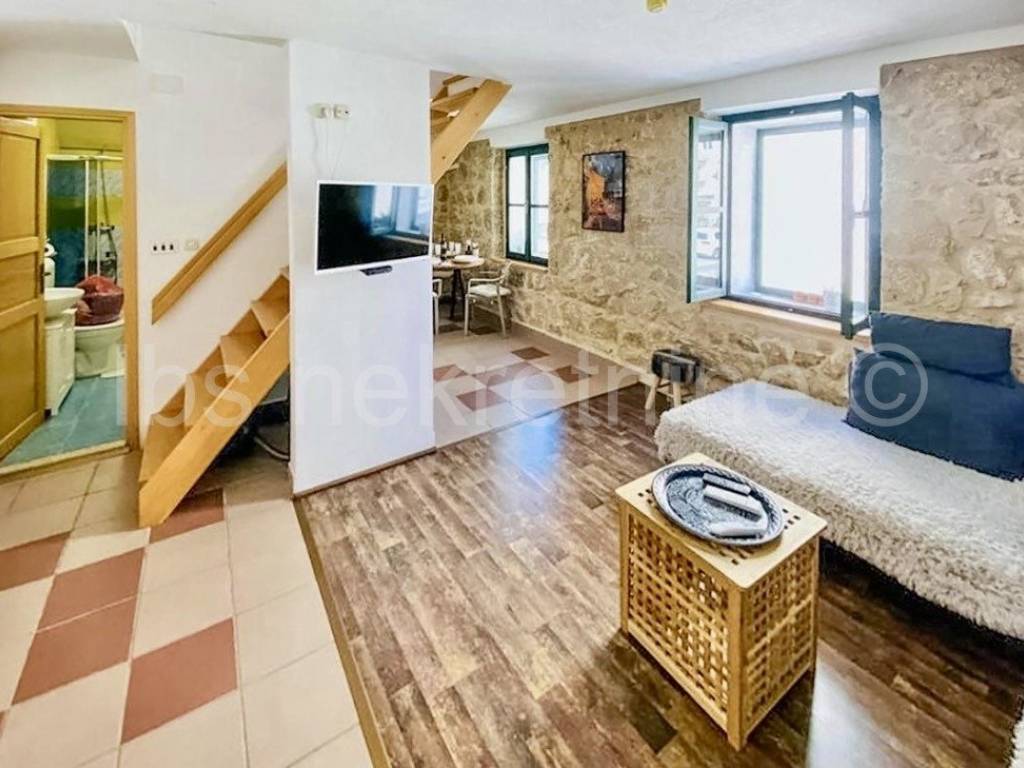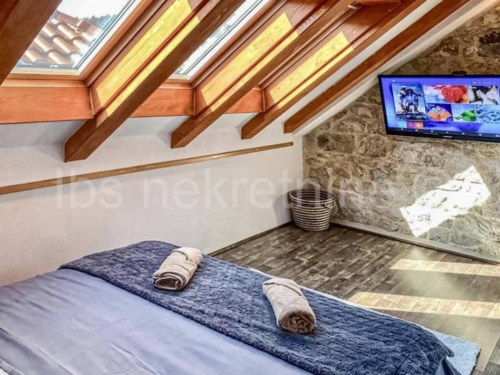 Interijer je pažljivo uređen, s naglaskom na očuvane kamene zidove, toplu rasvjetu i funkcionalni raspored, što prostoru daje autentičan dalmatinski karakter. Kuća je opremljena i klimatizirana te spremna za daljnje korištenje.