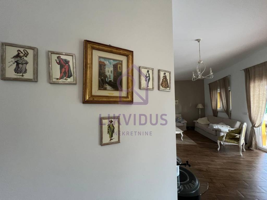 Kuća je površine 180 m2, ima tri sobe s kupatilima, a dnevni boravak i kuhinja čine jednu veliku povezanu prostoriju, uz visoke stropove. Vlasnica je ljubiteljica Venecije, pa je kuća i uređena u tom stilu.