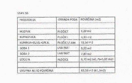 Zum Verkauf steht die Zweizimmerwohnung S6 im 1. Obergeschoss mit einer Wohnfläche von 61,30 m. Sie besteht aus einem Wohnzimmer mit Küche und Essbereich (31,50 m), zwei Schlafzimmern (9,50 m und 7,80 m), einem Badezimmer (4,30 m), einem Flur (3,20 m) und einer Loggia (6,70 m laut Berechnung 5,0 m). Die Wohnung ist nach Westen und Norden ausgerichtet.