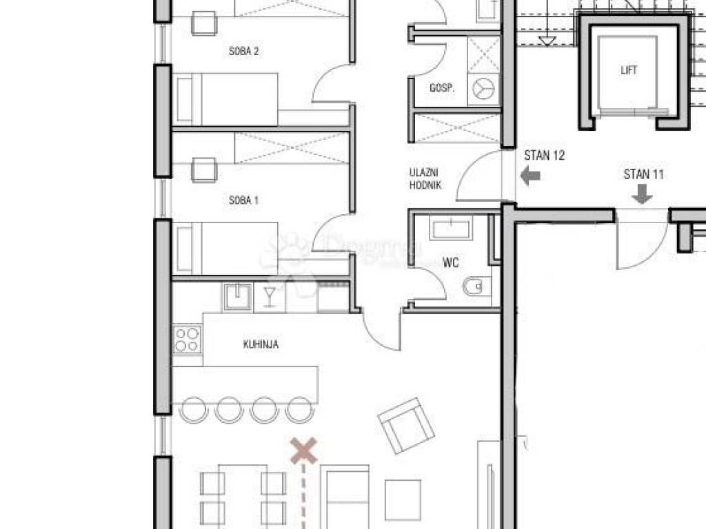 Die Wohnung S12 verkörpert modernes Wohnen auf höchstem Niveau in Stobreč eine exklusive Drei-Zimmer-Wohnung im Dachgeschoss des Gebäudes, konzipiert für anspruchsvolle Käufer, die Privatsphäre, Großzügigkeit und einen atemberaubenden Ausblick suchen.