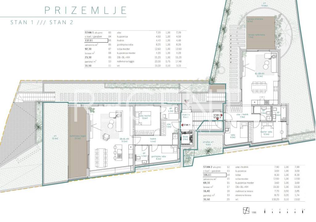 Diese luxuriöse Dreizimmerwohnung befindet sich im 1. Stock eines modernen Neubaus in ausgezeichneter Lage in Sveti Duh und bietet alle Annehmlichkeiten in Reichweite. Die Wohnung besteht aus: Flur Zwei Schlafzimmer Zwei Badezimmer Wohnzimmer mit Küche und Esszimmer im „Open-Space“-Konzept Terrasse Garten Es handelt sich um einen außergewöhnlichen Wohnkomplex mit insgesamt 3 Wohneinheiten und 6 Garagenstellplätzen, von denen zwei zu dieser Dreizimmerwohnung gehören. Dieses Projekt wurde mit den hochwertigsten Materialien und Technologien nach höchsten Standards gebaut und erstreckt sich über drei Etagen, deren vertikale Kommunikation durch einen Aufzug und ein Treppenhaus realisiert wird. Im Erdgeschoss befindet sich der Zugang zum Garagenbereich, im 1. Stock befinden sich zwei Dreizimmerwohnungen und im 2. Stock befindet sich ein Penthouse. In der Nähe befinden sich Restaurants, Geschäfte, Cafés, Bus- und Straßenbahnhaltestellen sowie alle Einrichtungen für ein angenehmes und praktisches Leben, einschließlich Kindergarten, Schule und Krankenhaus. Außerdem erreichen Sie bequem das Stadtzentrum, aber auch die Hauptverkehrsadern wie die Slavonska Avenue. Die perfekte Wahl für ein komfortables Leben im Herzen von Zagreb! Ausstattung und Qualität: Heizen und Kühlen: Fußbodenheizung mit Wärmepumpe Bodenbeläge: Parkett erster Klasse Tischlerei: ALU-Tischlerei mit dreischichtigem IZO-Glas + Wärmefassade mit Fassadenziegeln Deckenhöhe: 290 – 300 cm Geplante Fertigstellung: 2026. Jahr. Für weitere Informationen oder zur Vereinbarung eines Besichtigungstermins können Sie uns gerne kontaktieren!