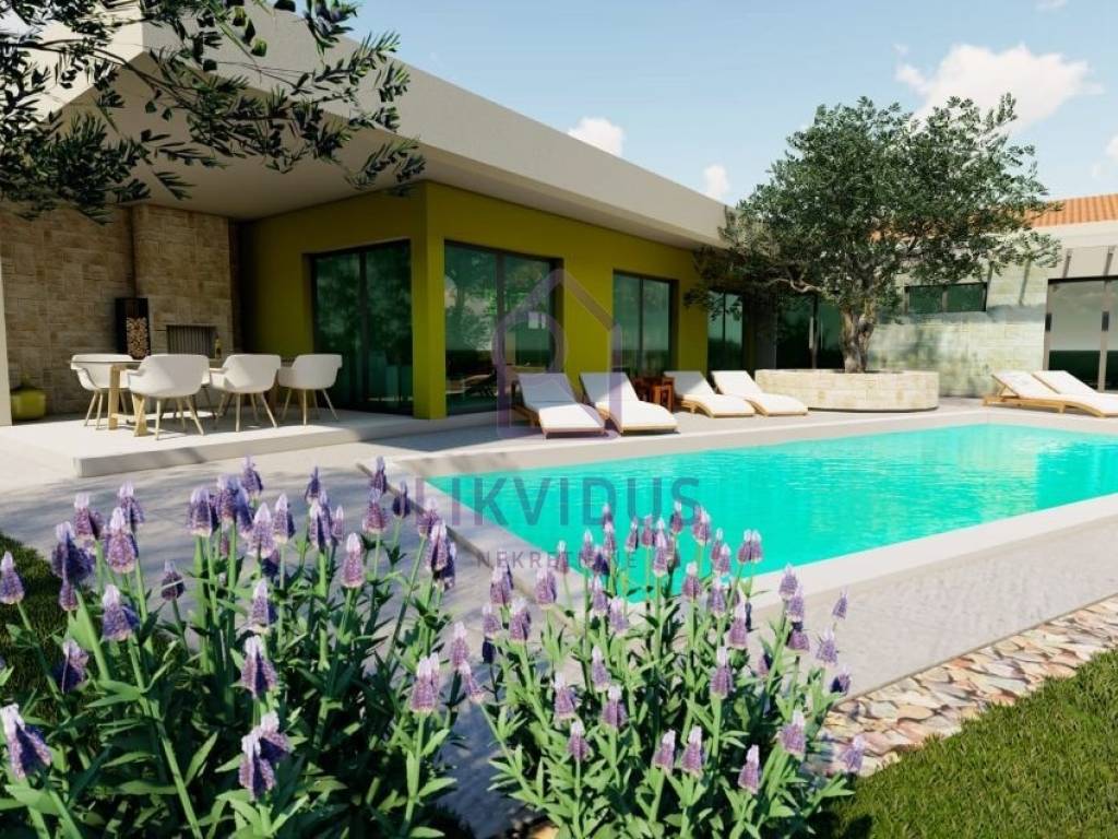 Prizemnica je površine 187,97 m2, a sastoji se od kuhinje, dnevnog boravka, blagovaone, tri spavaće sobe, dva kupatila, hodnika, te terase. Ispred kuće nalazi se sunčalište sa bazenom. Na okućnici od 550 m2 nalaze se i dva parkirna mjesta. Ukoliko novi vlasnik želi veću okućnicu moguće je dokupiti još zemljišta.