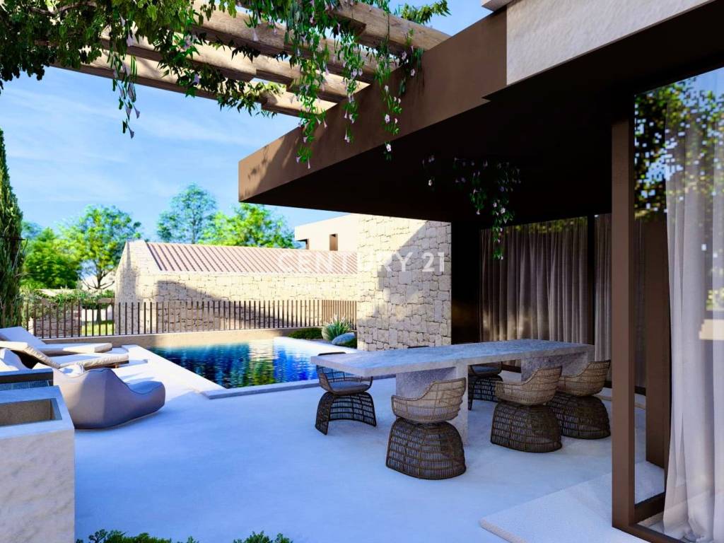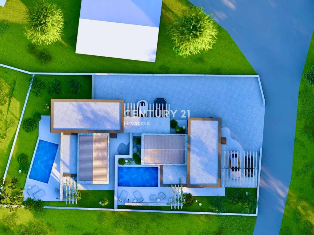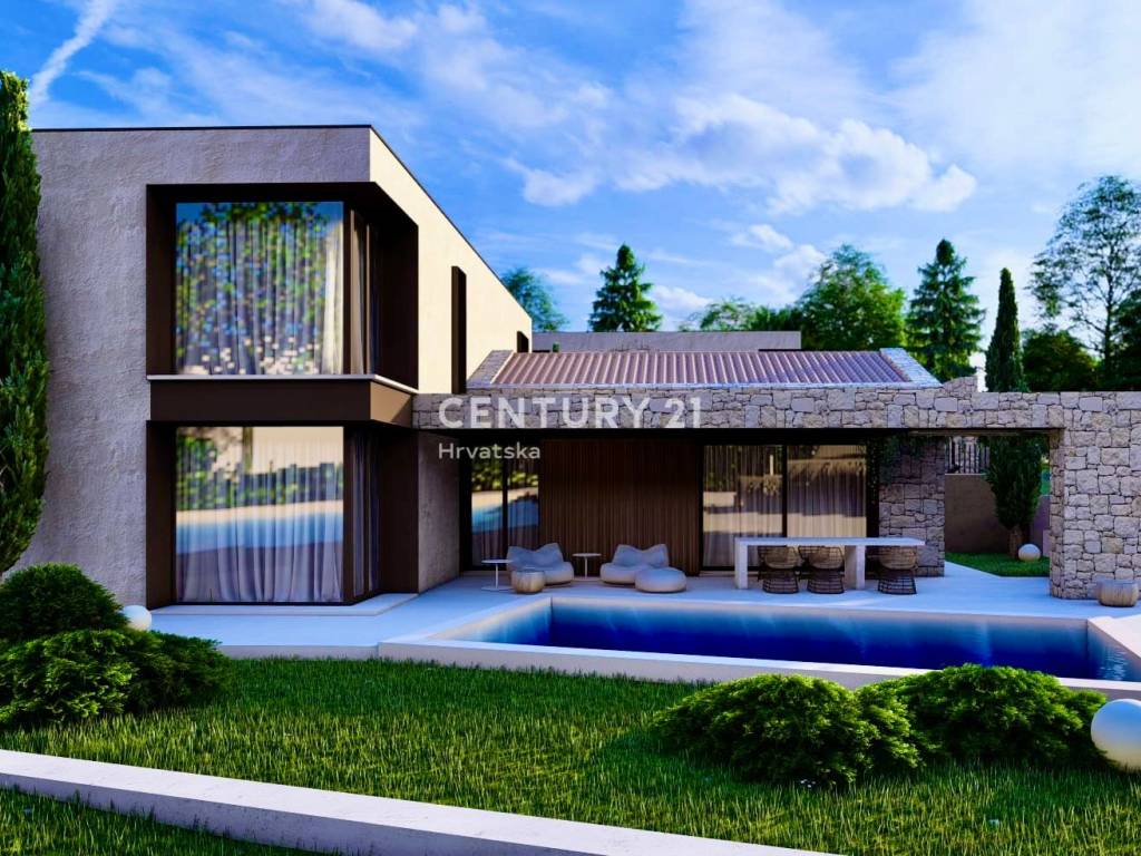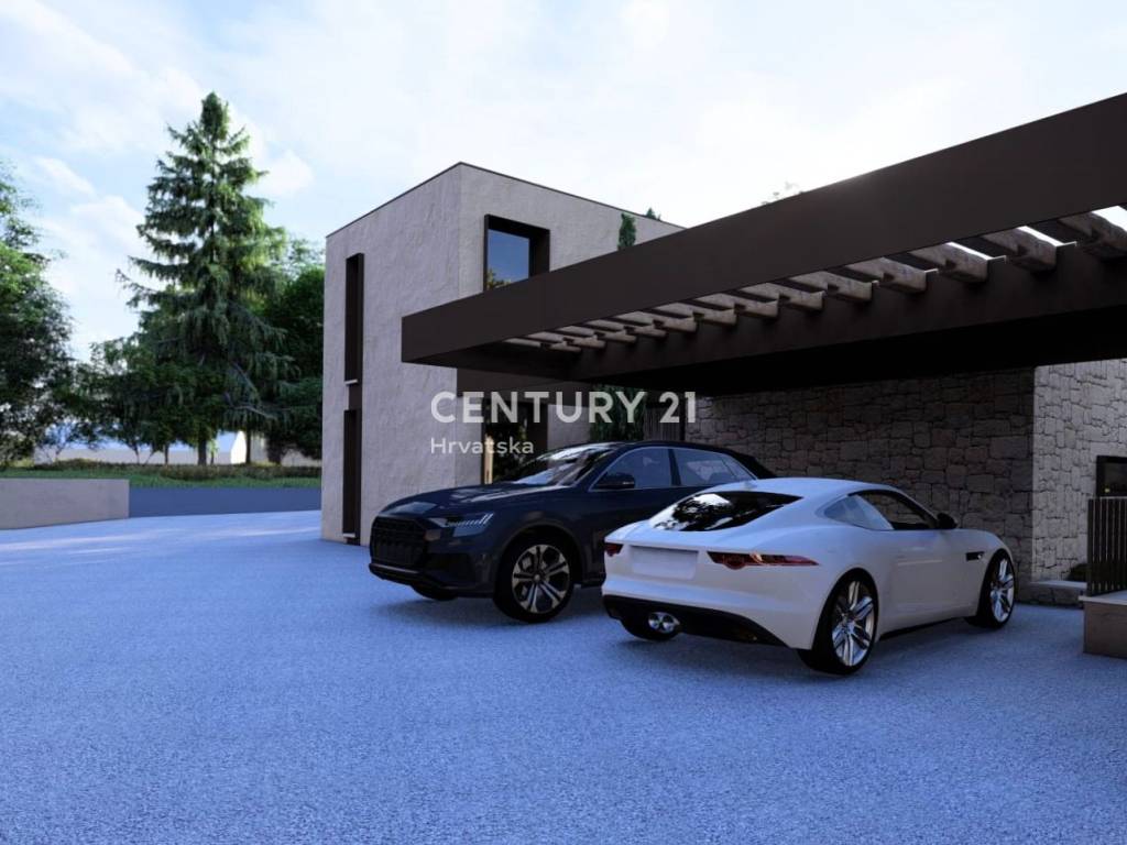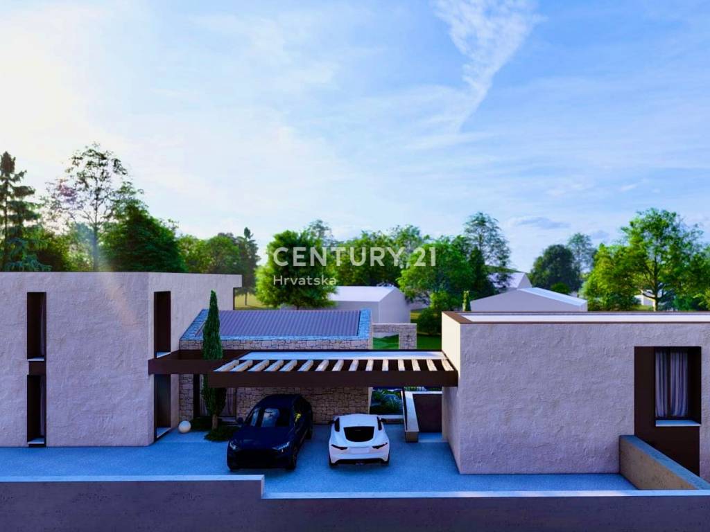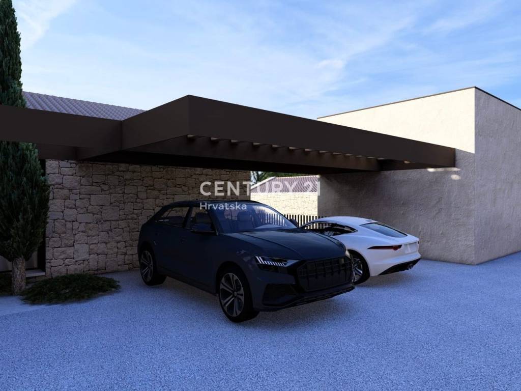 Auf dem schön angelegten Grundstück befindet sich ein Pool mit Sonnenterrasse, ideal zur Entspannung an Sommertagen. Die Kuća verfügt außerdem über einen überdachten Parkplatz für zwei Autos.