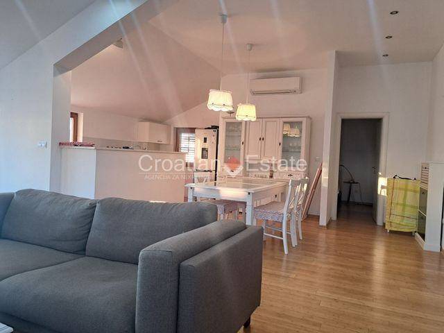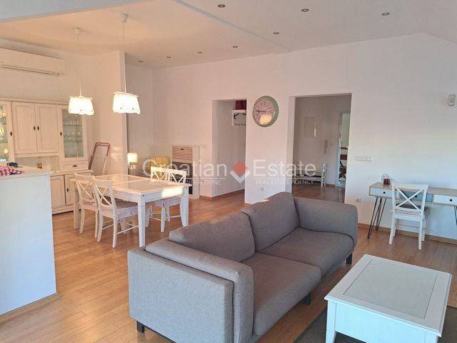 Wir vermieten eine schön eingerichtete, sonnige Zweizimmerwohnung, gelegen im zweiten Stock eines Hauses in der ruhigen Gegend der Bacvice-Nachbarschaft in der Stadt Split. Die Wohnfläche der Wohnung beträgt 125m2 und sie besteht aus einer Küche mit Essecke und einem Wohnzimmer mit Zugang zu einem Balkon mit Meerblick, zwei Schlafzimmern, einem Ankleidezimmer und zwei Badezimmern. Alle Nebenkosten außer Strom sind im Mietpreis enthalten. Ein Parkplatz gehört zur Wohnung. Kleintiere sind erlaubt. Verfügbar ab dem 15. Februar 2026.