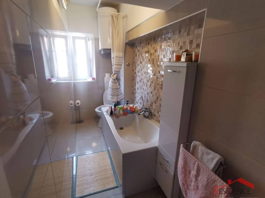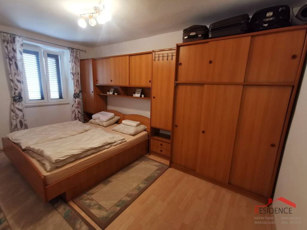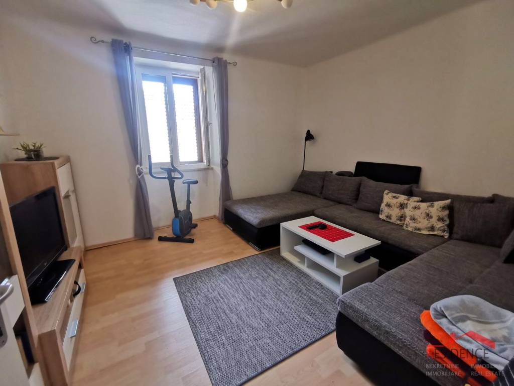 Pula, Zentrum, wohnung fläche von 61,39 m2, im ersten stock eines wohnhauses gelegen. Die Wohnung besteht aus einem gang, küche mit esszimmer, wohnzimmer, zwei schlafzimmern und einem badezimmer. Es verfügt über neue PVC-tischlerei und aluminium jalousie, ist möbliert und die mobel ist im preis inbegriffen.