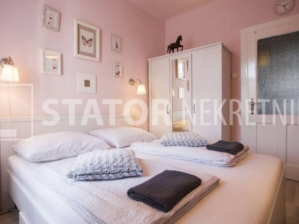Na početku Petrove ulice iznajmljuje se odlično uređeni dvosobni stan na prvom katu. Sastoji se od ulaznog prostora, na lijevo dnevnog boravka sa prostorom za blagovanje i kuhinje. Desno od ulaza je spavaća soba s kupaonicom i odvojeni WC. Grijanje je etažno plinsko, klima. Stan je u potpunosti adaptiran 2020 ( novi prozori, podovi, keramika, uređena unutarnja stolarija). U dvorištu je parking za stanare.
