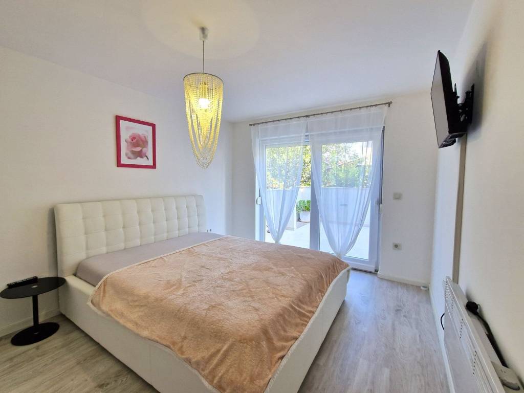 Prodaje se potpuno namješten i opremljen stanu Sabunikama ukupno neto površine od 128,62 m2 na udaljenosti od 600 m od mora i plaže. Stan se nalazi u prizemlju manje zgrade sa ukupno 6 stanova a sastoji se od prostranog dnevnog boravka, kuhinje, tri spavaće sobe, dvije kupaonice, balkona i terase. Stanu pripada prostrano stražnje dvorište, sprmište te jedno parkirno mjesto.