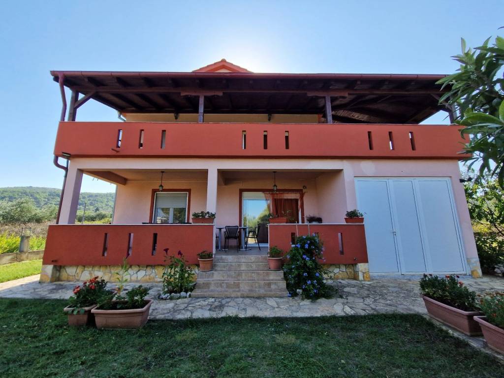Samostojeća kuća u Neviđanima na otoku Pašmanu sagrađena na zemljištu od 860 m2 sa pogledom na more. Kuća se sastoji od dva dvosobna stana od 86 m2, jedan u prizelmju i jedan na katu. Svaki stan sastoji se od prostranog dnevnog boravka i kupaonice, dvije spavaće sobe, dvije kupaonice, i prostrane terase. Stan na prvom katu ima terasu od 90 m2 sa pogledom na more. U dvorištu se nalazi natkrivena zona za roštiljanje sa blagovaonskim stolom, manje dječje igralište, sjenica sa ležaljkama te bogato uređen vrt.