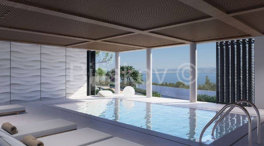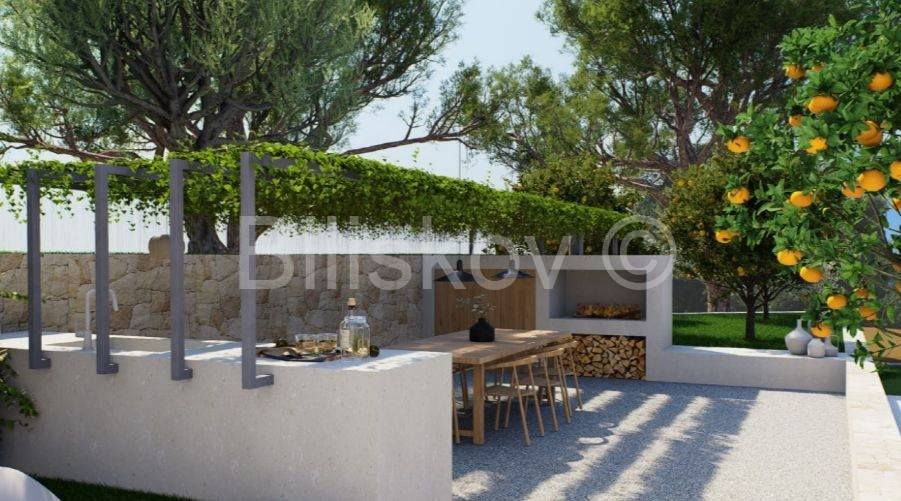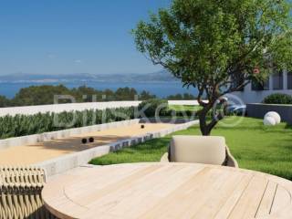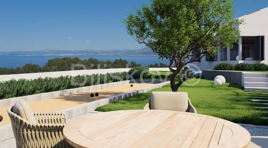 Die Immobilie befindet sich auf einem großzügigen Grundstück von 2.803 m, die Grundfläche des Hauses beträgt 336 m. Sie ist als freistehende Villa auf zwei Etagen geplant, Erdgeschoss und Obergeschoss, mit Schwerpunkt auf offenen Räumen und maximaler Nutzung des Meerblicks.