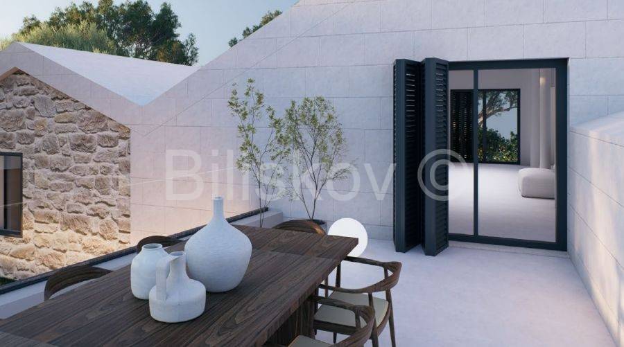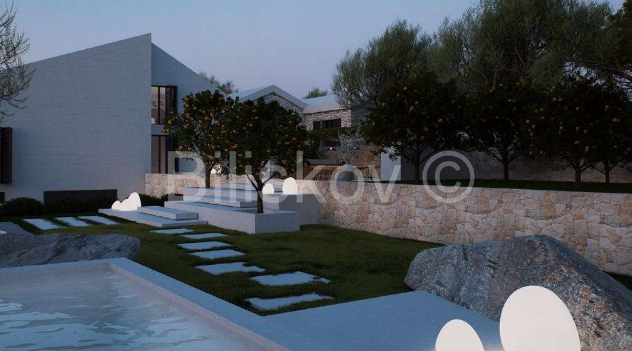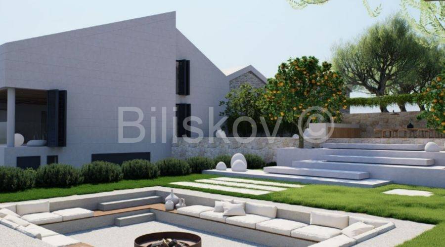 Zum Verkauf steht eine vierzimmerige Villa im Rohbauzustand, gelegen oberhalb von Supetar mit freiem Blick auf die Adria. Es handelt sich um eine seltene Lage, die Ruhe und Privatsphäre mit ausgezeichneter Verkehrsanbindung zum Festland verbindet.