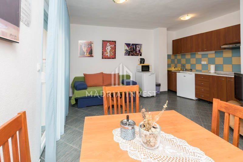 Zum Verkauf steht ein Haus mit 4 Wohneinheiten, komplett möbliert und ausgestattet, mit einem etablierten touristischen Mietvertrag. Jede Wohneinheit verfügt über Klimaanlage, neue Bäder, große Terrassen. Das Haus liegt auf einem erhöhten Teil von Karina und hat einen schönen Blick auf das Meer. Die Konstruktion ist von hoher Qualität, die Dokumentation ist in Ordnung.