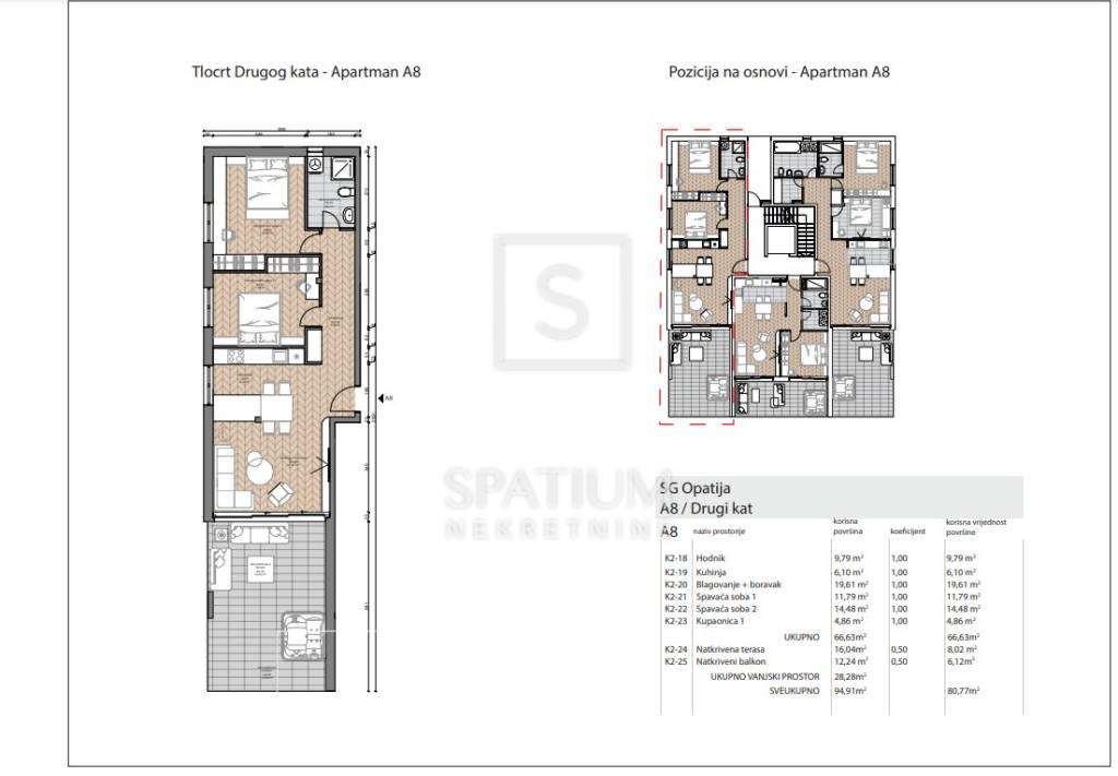 OPATIJA, uns wurde eine luxuriöse Wohnung im zweiten Stock eines neuen Gebäudes angeboten. Es besteht aus einem Flur, einem Wohnzimmer mit Küche und Esszimmer, drei Schlafzimmern, zwei Badezimmern und einem Hauswirtschaftsraum sowie einer überdachten Terrasse und einem Balkon mit einer Gesamtfläche von 80,77 m2. Es wird mit erstklassigen Bodenbelägen, Sanitärkeramik und Aluminiumschreinerei ausgestattet. Darüber hinaus wird das Gebäude über eine Tiefgarage und einen Aufzug verfügen, der direkt von der Garage in die Etagen führt. Das Gebäude hat eine tolle Lage und die Terrasse bietet einen freien Blick auf das Meer. Einzugsfrist ist: 6/2025. Opatija, eine wunderschöne Küstenstadt an der Adria und berühmter Kurort aus dem 19. Jahrhundert, ist ein beliebtes Reiseziel für Touristen aus aller Welt. Die Stadt ist von einzigartigen Naturschönheiten umgeben. Es liegt unterhalb des Berges Učka, der ein beliebtes Ziel für Bergsteiger und Wanderer ist. Es liegt am Übergang zwischen der grünen Region Istriens und der Küste und bildet ein perfektes Gleichgewicht der Landschaft. Die Stadt bietet einen wunderschönen Blick auf das Meer und die nahegelegenen Inseln Krk und Cres. Es ist umgeben von charmanten historischen Städten mit engen Gassen und einer reichen Geschichte. Opatija ist mit einer Vielzahl ungewöhnlicher Sehenswürdigkeiten, zahlreichen Stränden und klarem Meer geschmückt und die Straßen der Stadt sind übersät mit Häusern interessanter Architektur und Villen aus der Habsburgerzeit. Für alle weiteren Informationen können Sie uns gerne kontaktieren. Spatium nekretnine +385 51 272 903 +385 95/812-6476 info@spatium.hr